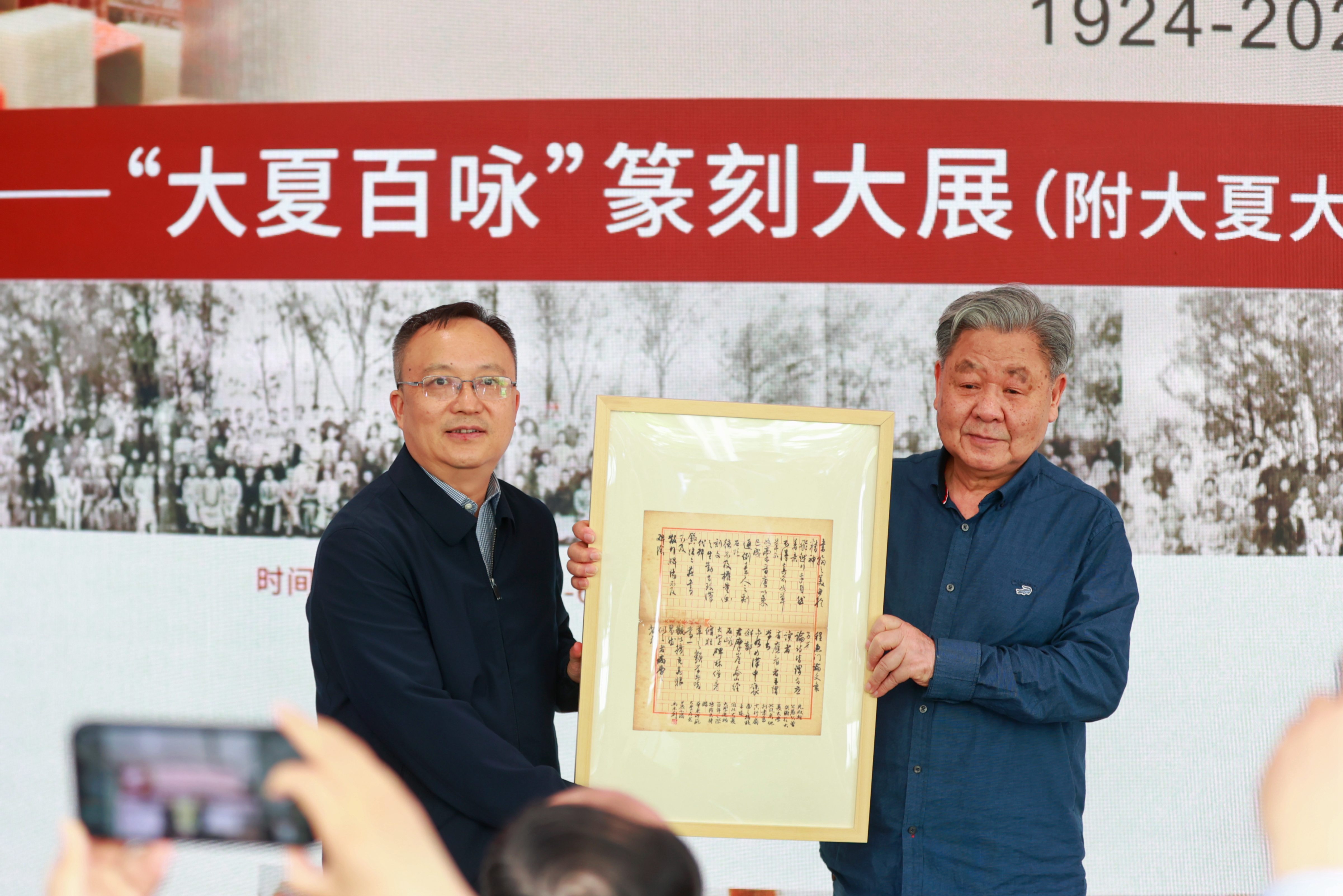 捐赠“大夏百咏”篆刻作品并颁发捐赠证书
