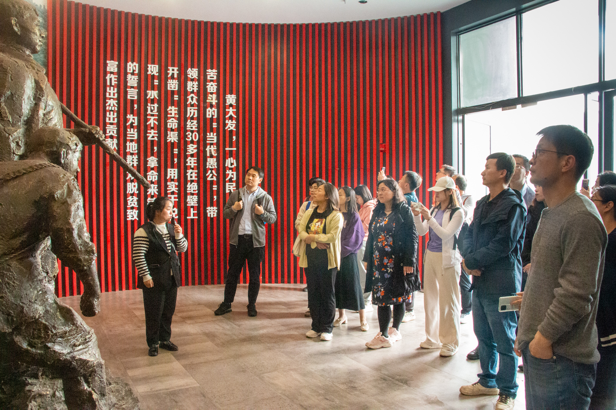 在遵义市平正仡佬族乡团结村大发渠,学员们聆听“七一勋章”获得者、感动中国2017年度人物、时代楷模黄大发老支书的现场党课。团结村曾因常年缺水,是远近闻名的穷山村,后来时任村支书的黄大发立志修渠引水,他带领群众,历时36年,靠着双手在绝壁上凿出一条长9400米、绕三重大山的“生命渠”,引来了螺丝河清亮的水,当地群众亲切地称之为“大发渠”。学员们通过参观大发渠以及大发渠陈列馆内的实物、资料和图片,感受老支书带领群众修渠、修路的艰辛历程。