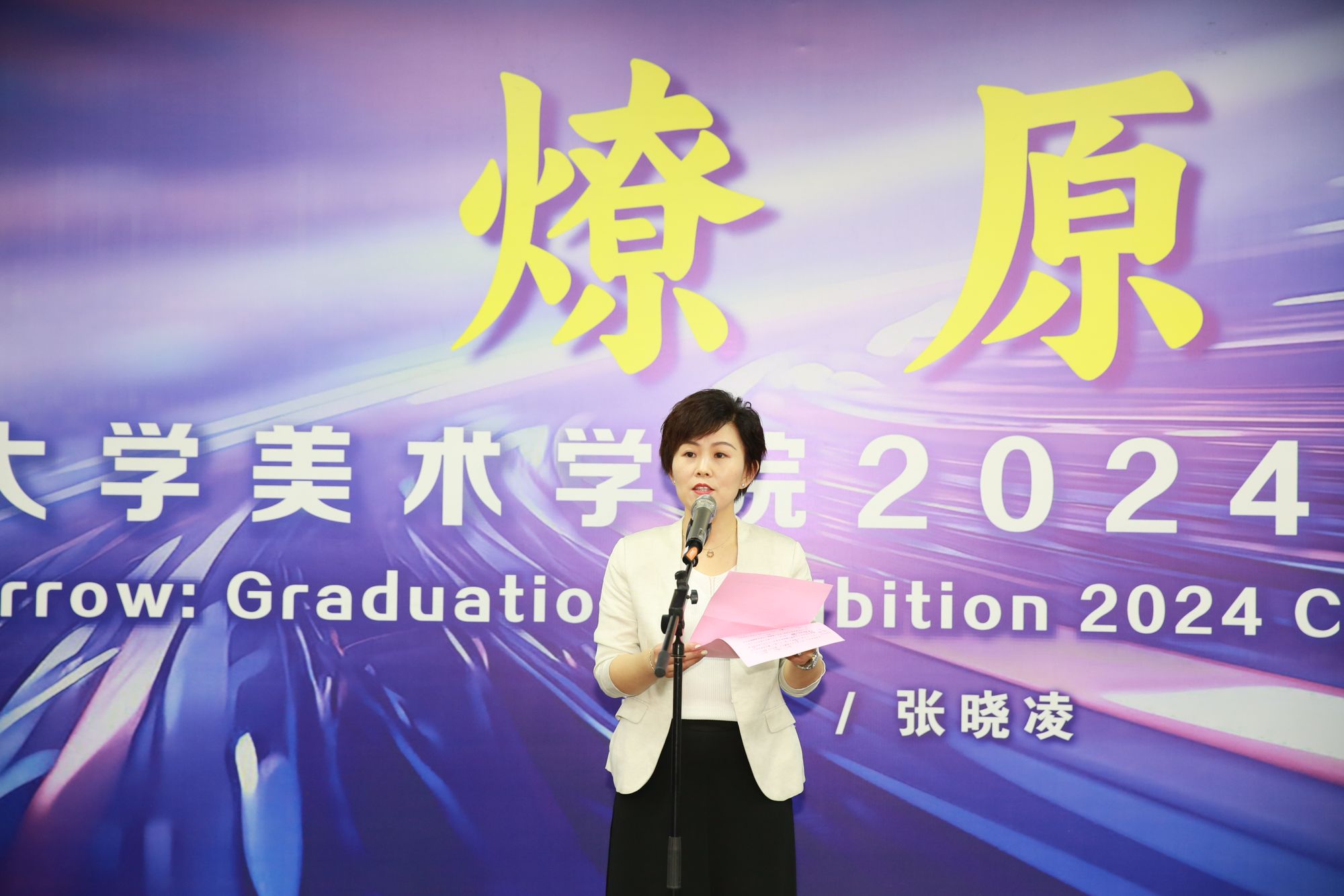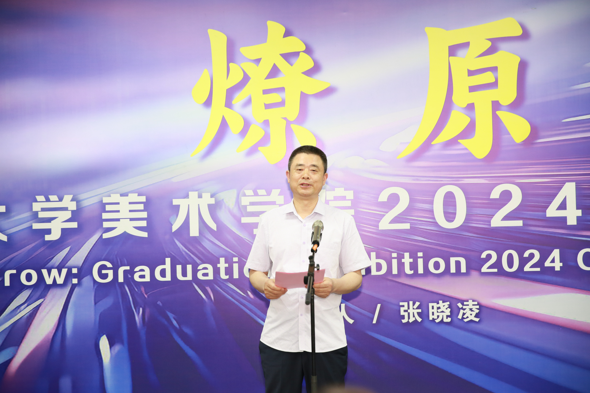 美术学院今年的毕业展以“燎原”为题,更多是寄托着对2024届毕业生的殷切希望,希望大家能成为一颗传播美育的火种,以卓越的素养、先锋的引领、当代的品性,坚持守正与创新相结合,与世界上不同的文化展开对话,以艺术的力量服务人民群众对美好生活的向往。