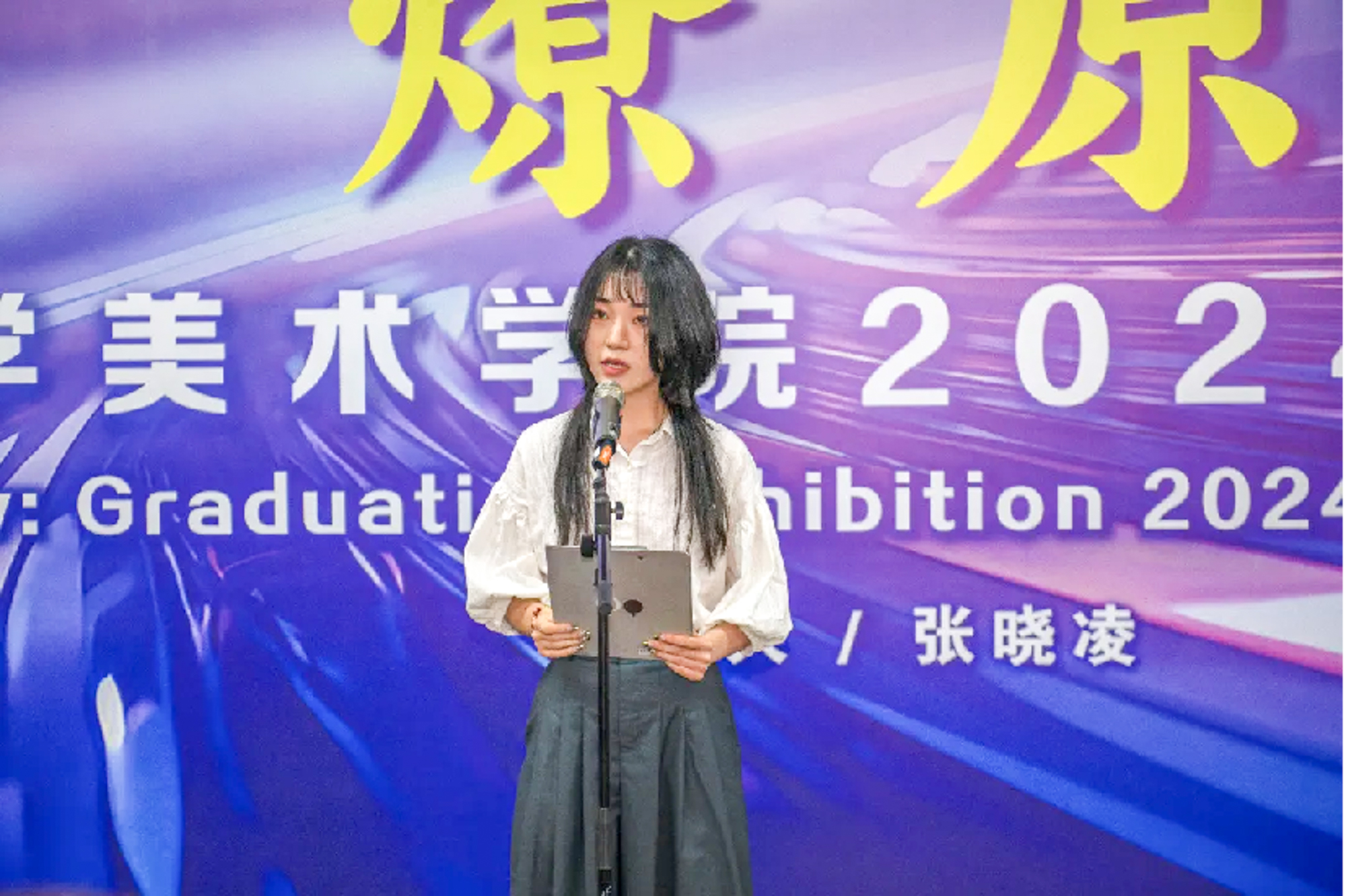 本科毕业生代表陈涵钰感恩美术学院提供的每一个登高望远的阶梯,丰富而具有前瞻性的课程开拓了视野,为学生的发展搭建了多元开放的平台,探索自身更多可能性并尽情施展创意与才华。