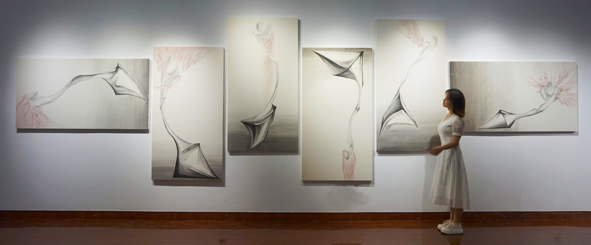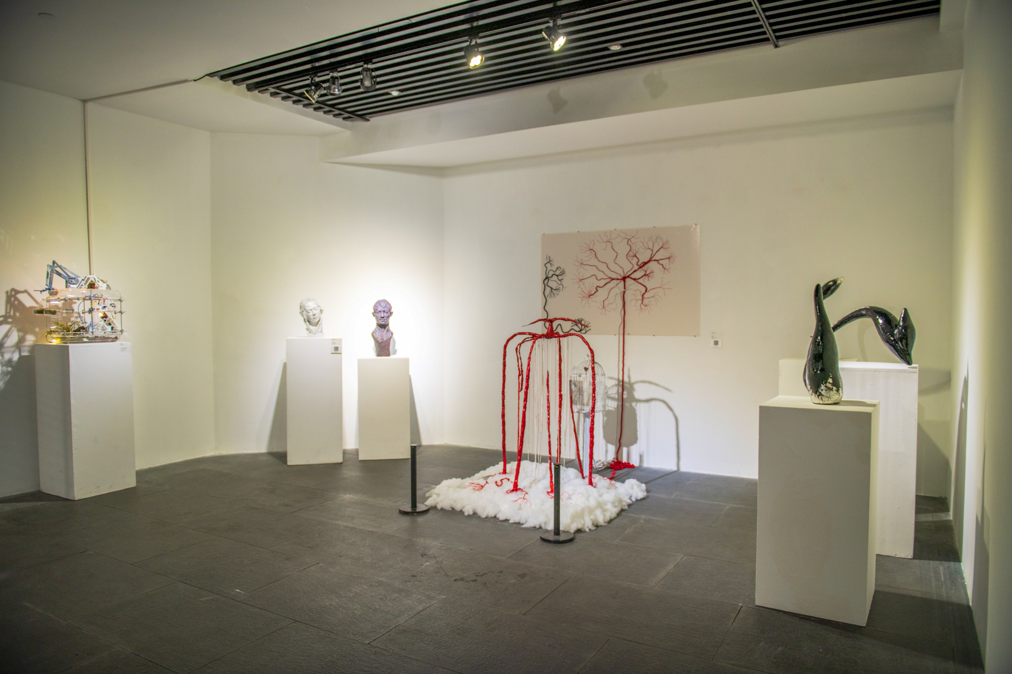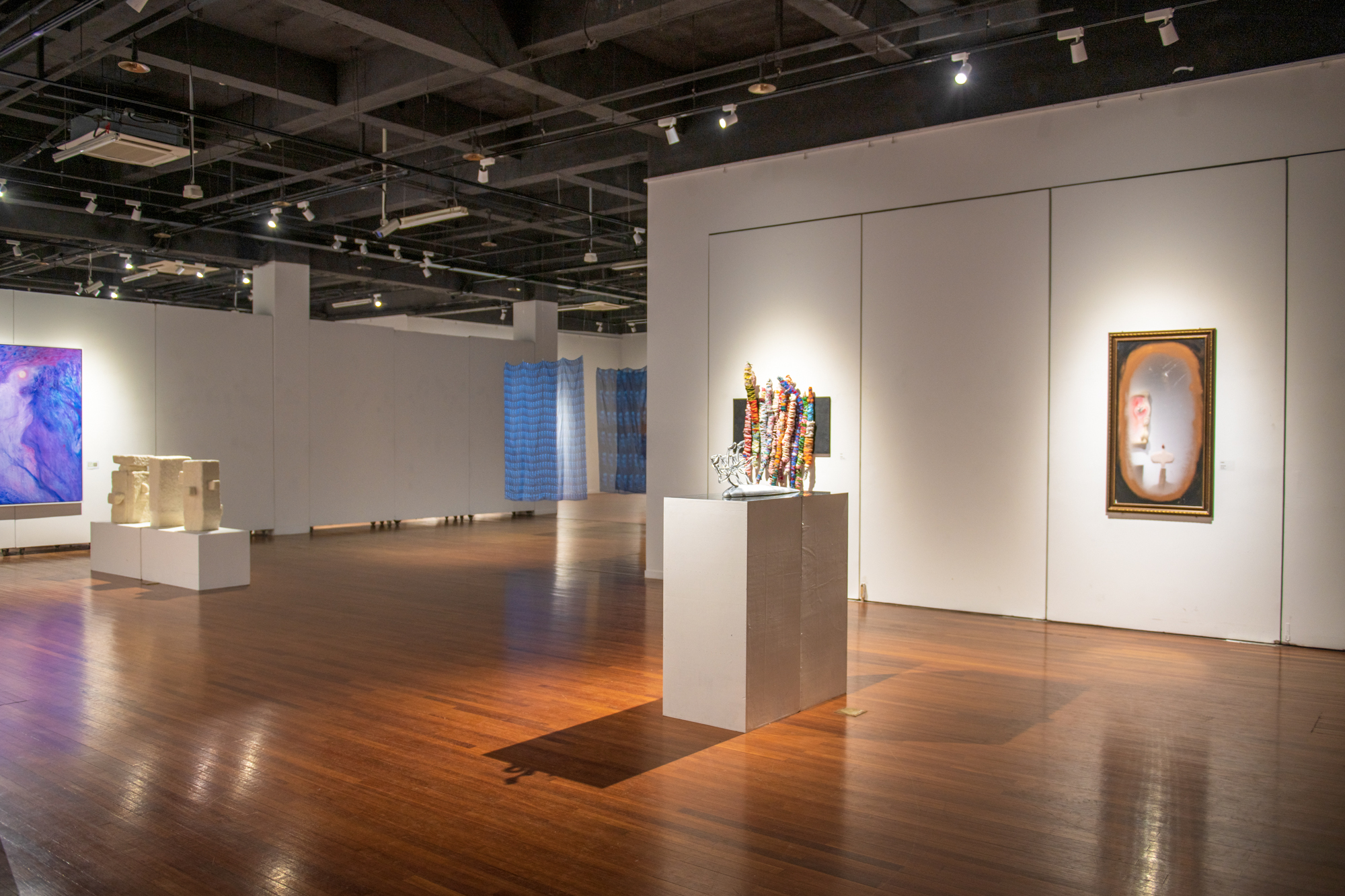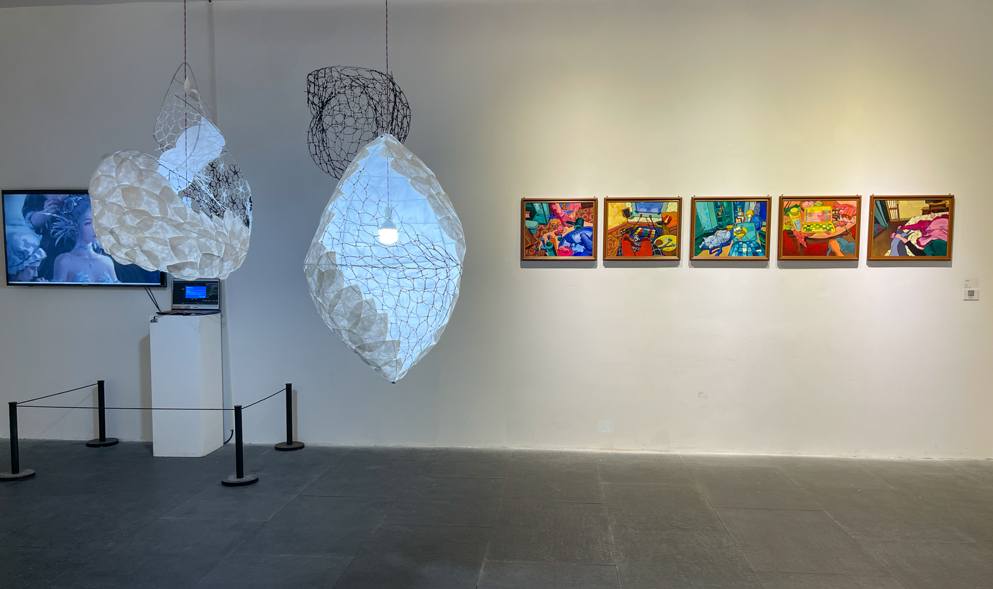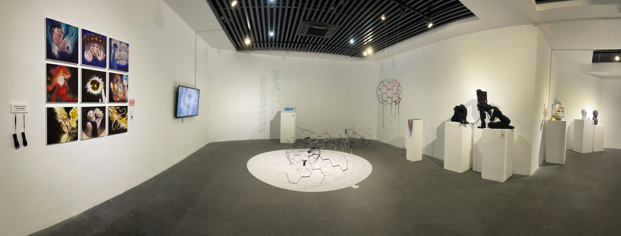 本次展览共展出2024届56名硕士毕业生和58名本科毕业生创作的200余组/件毕业作品,包含中国画、油画、漆画、书法、雕塑、装置、影像、综合艺术等多种艺术形态,是美术专业卓越人才培养的重要环节,体系性地展现了师生们的创造性智慧与创新性追求。