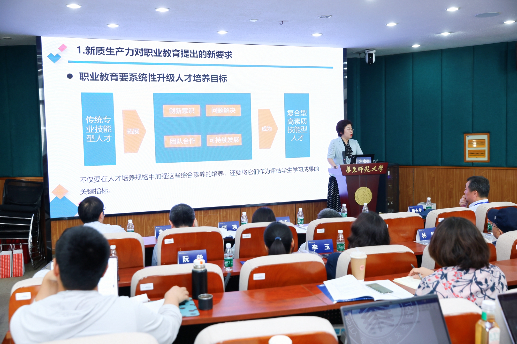 “弘扬教育家精神,培育新时代‘良匠之师’”分论坛面向加快发展新质生产力和推动高质量发展的时代要求,以主题报告与沙龙研讨相结合的形式,聚焦教育家精神与职业院校教师校长成长、服务新质生产力新要求与教师队伍建设新举措两个层面,力求着力解决当前职业教育“双师型”教师队伍建设的关键问题。