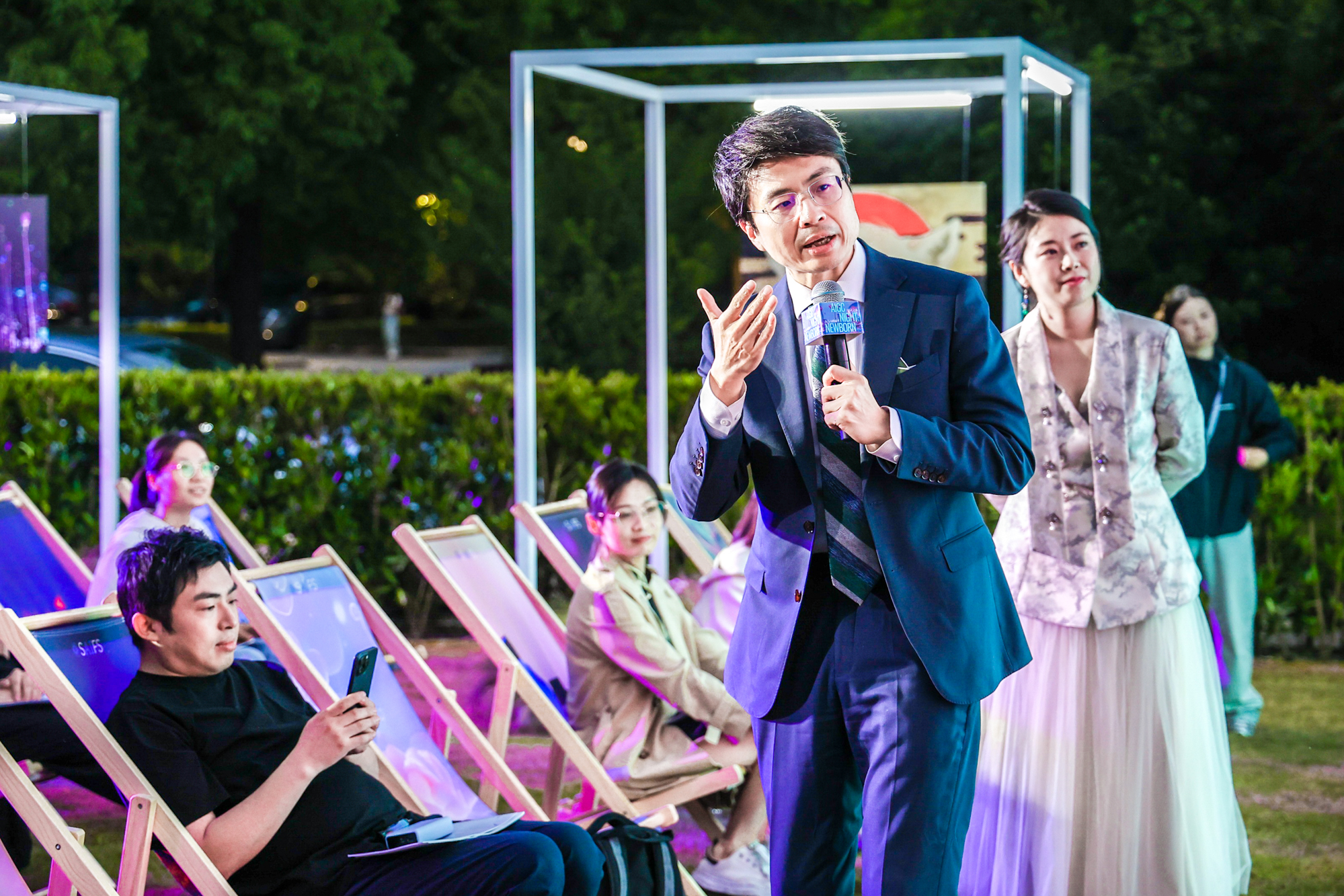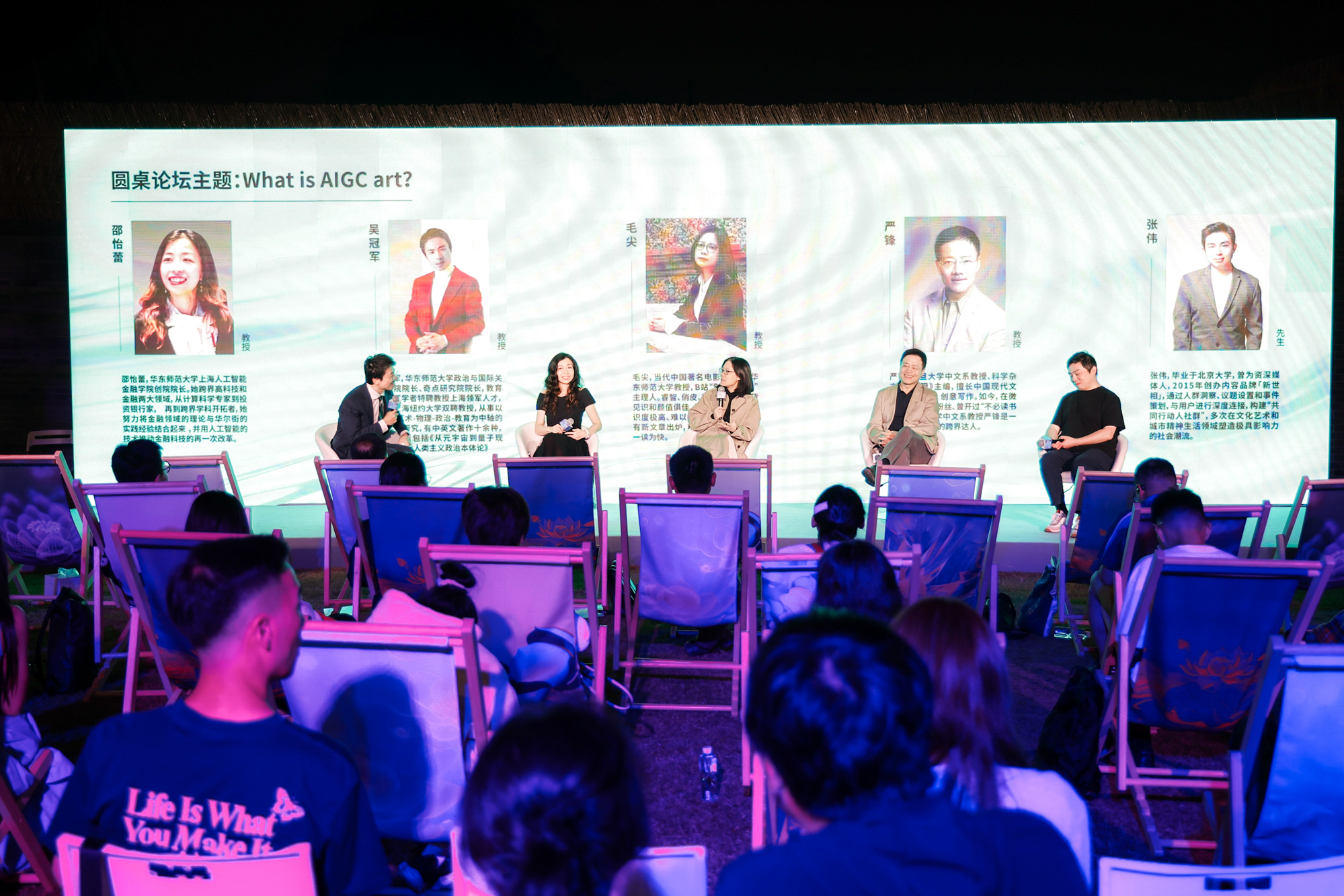 6月1日晚,由华东师大上海人工智能金融学院和经济与管理学院共同举办,华东师大奇点研究院协办的“AIGC之夜:人与AI的新生”活动在校友之家绿地草坪举行。