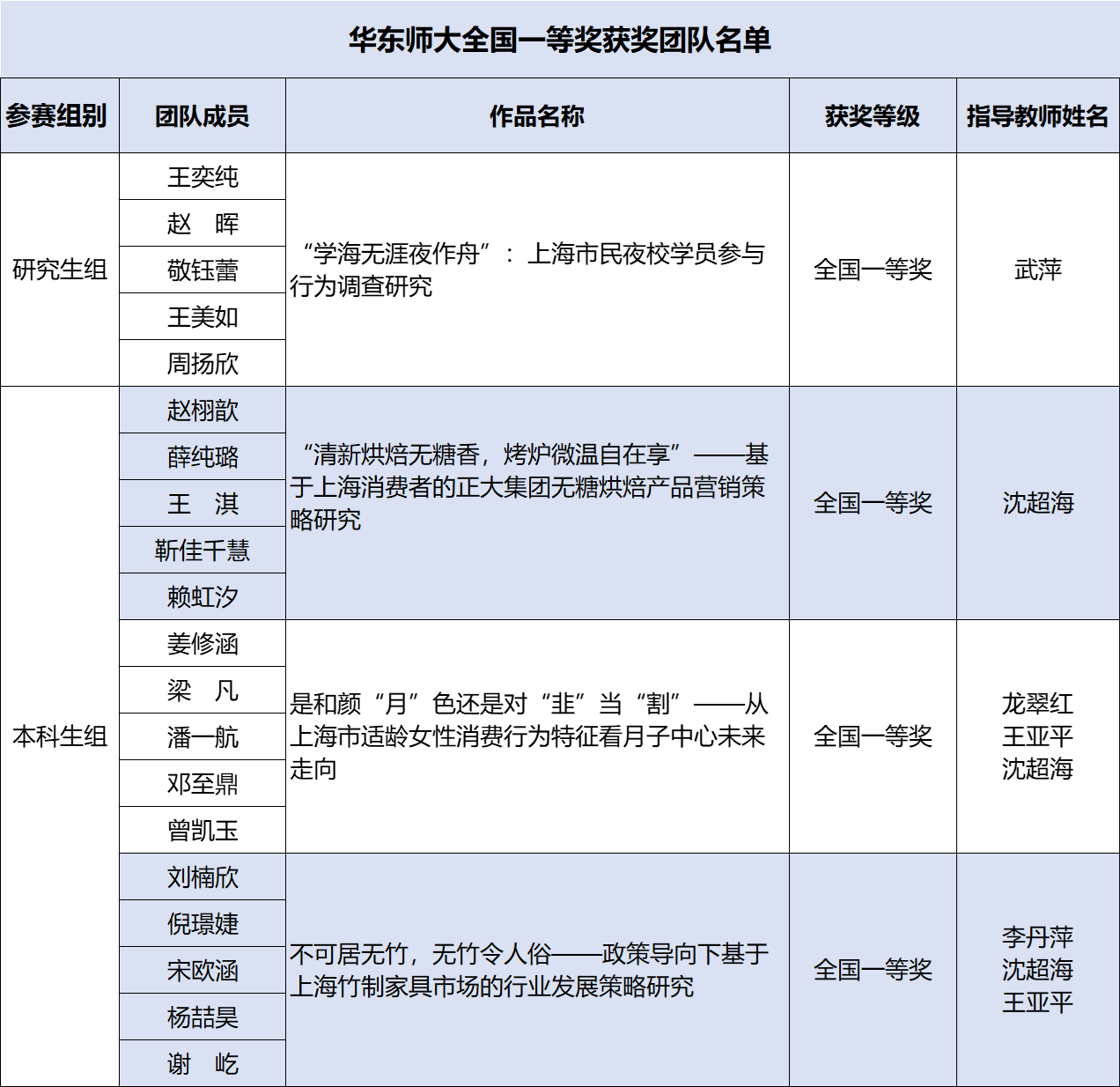 本科生组全国一等奖团队