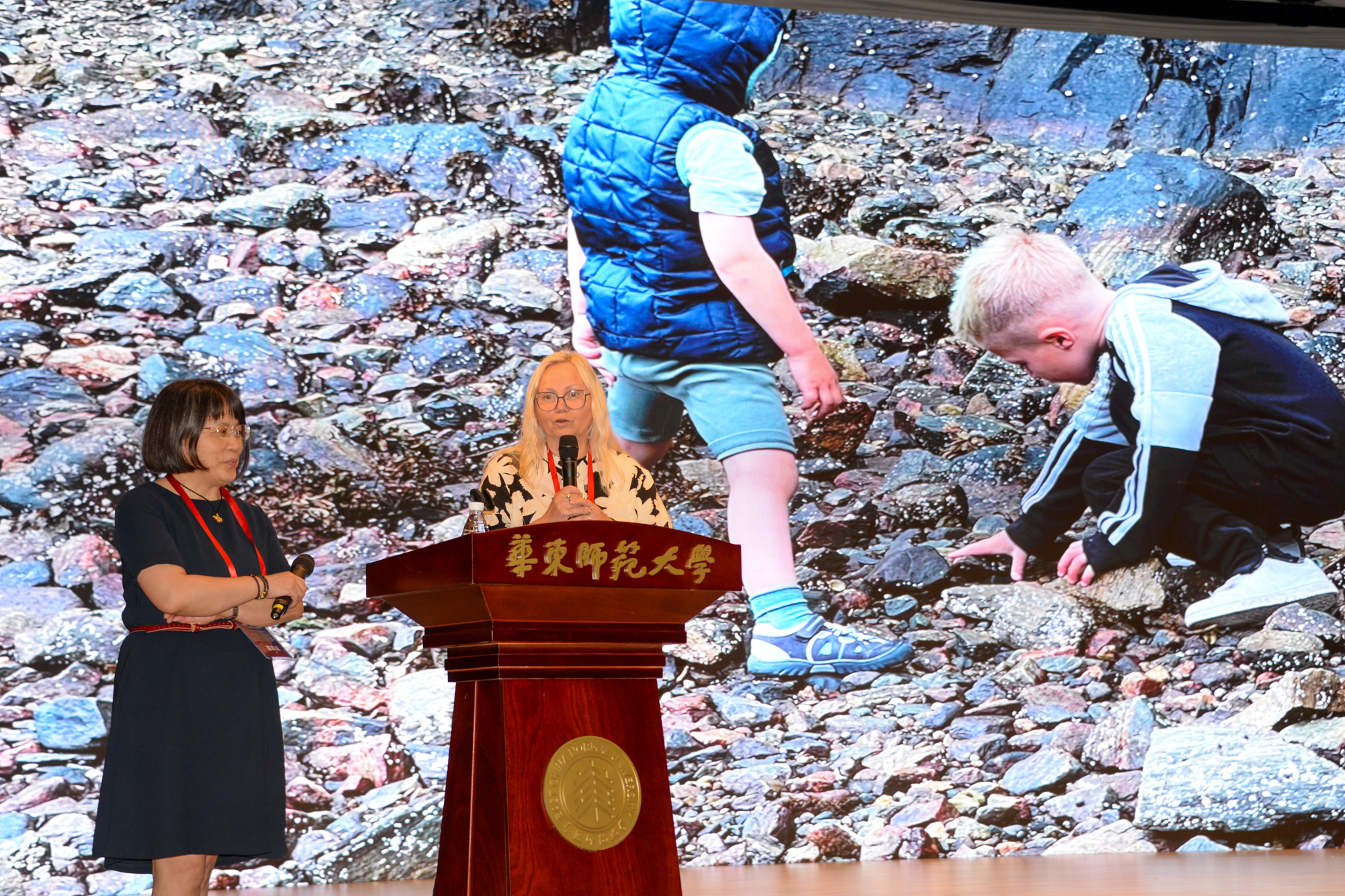西挪威应用科技大学教授Elin Eriksen Ødegaard和副教授Aihua Hu作题为“共同探索:指向学前教育质量提升的挪威实践”的主旨报告,报告介绍了教育部的挪威幼儿园课程指南如何解读质量,强调“探究”作为高质量学前教育指标的重要性,通过分享获奖影片《海洋肖像——北海的孩子们》,电影通过让幼童表达对世界关怀和可持续未来的看法,诠释了优质教育,记录了儿童、幼儿园工作者和艺术家共同体验、感知和探索陆地与海洋之间的生物群落,阐述了旨在支持可持续发展目标4“优质教育”和目标14“水下生命知识和海洋素养”的挪威学前教育实践。