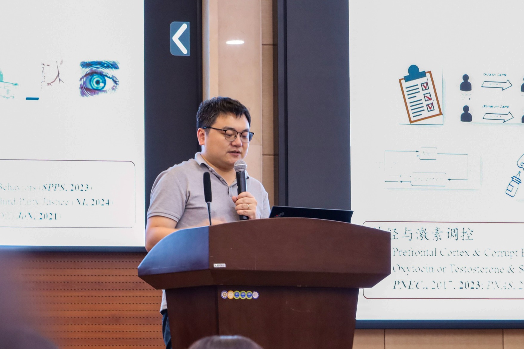 华东师大心理与认知科学学院胡捷研究员作题为《财富再分配的认知神经机制》的专题报告。结合认知计算建模方法和神经成像技术,胡捷研究员通过两项实证研究,从个体层面揭示了财富再分配行为背后的不同动机及其相应的神经基础,并探讨了不同财富来源对财富再分配行为的影响。