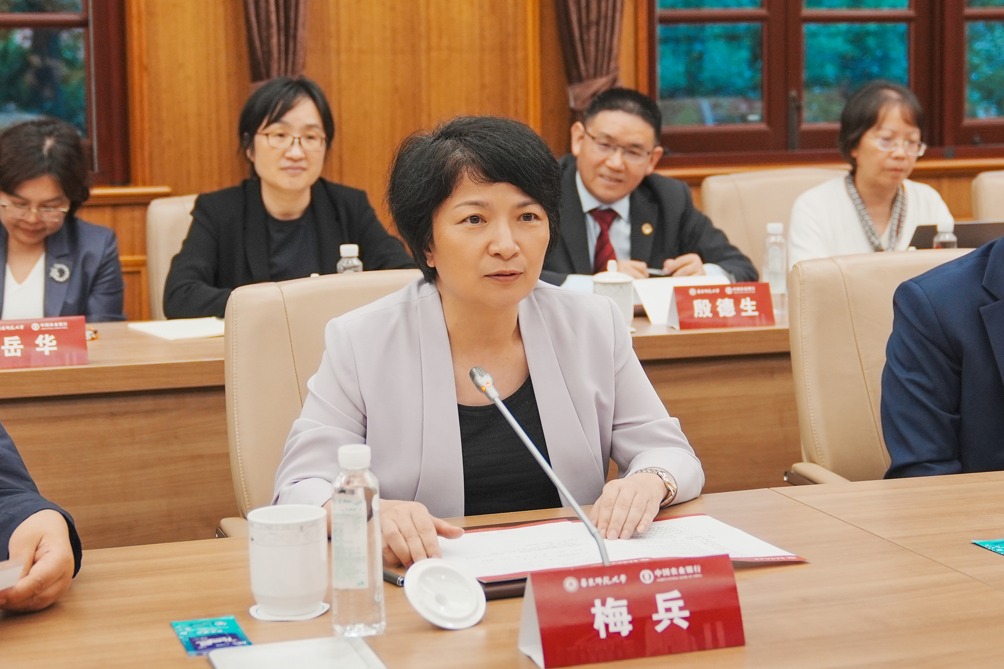 梅兵对谷澍一行来访表示欢迎,对中国农业银行长期以来给予华东师大的大力支持表示感谢。她指出,华东师大与中国农业银行建立全面战略合作关系,具有深厚的感情基础和扎实的学术支撑,期待进一步巩固合作成果、拓展合作空间、深化合作内容,携手打造校银合作新典范。