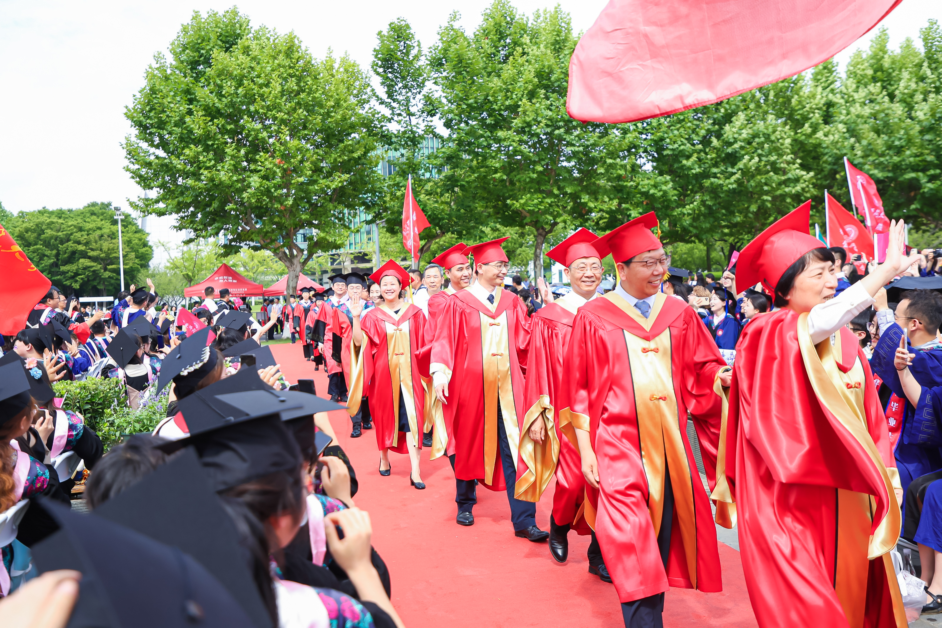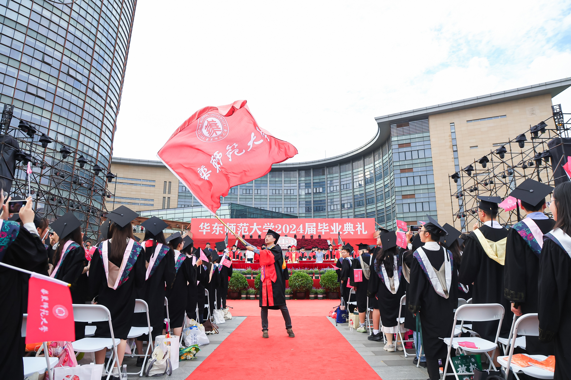 校领导梅兵、钱旭红、曹友谊、顾红亮、孟钟捷、程静,校学术委员会和各专门委员会负责人,学部、院系、书院负责人,机关职能部门和直属单位负责人,校友代表,教师代表,员工代表,毕业生亲友等出席典礼,一起见证师大学子完成学业开启人生新征程的重要时刻。