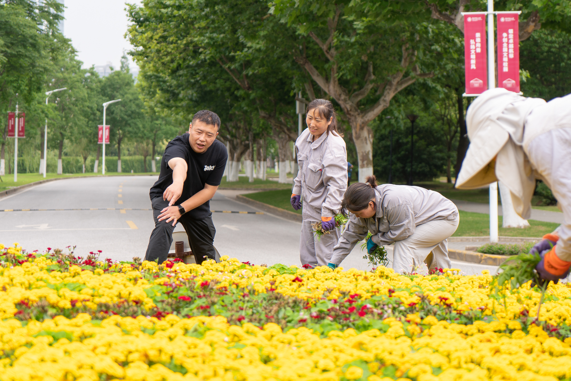 学校每次重大活动的筹备都有他们的身影。而春天是他们最忙碌的时节,植树节前后忙于采购、搬运、选址、栽种……夏天协助做好防汛防台工作,到了秋天,仅闵行校区的落叶杂草就有万余袋,收集、装袋、运输……
