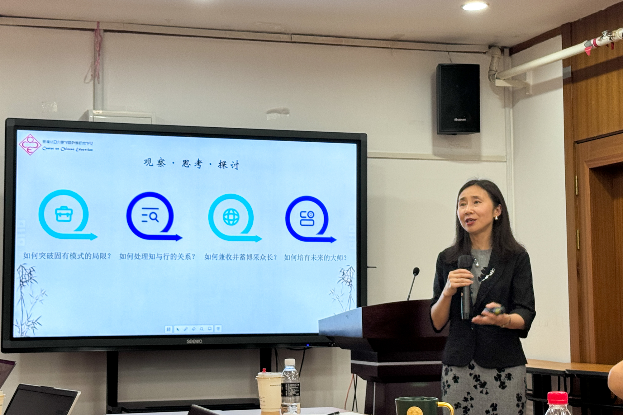 在会谈前,程贺南教授面向教育学部师生作题为“高等教育机构国际影响力的形成与辐射——以哥伦比亚大学国际教育研究所为例”的演讲。在讲座中,她介绍了哥伦比亚大学教育学院的历史地位、学术与实践方面的相关研究,着重讲述了哥大与中国的重要历史渊源,从东西方比较的视角探讨孟禄所提出的国际教育交流功能的现实意义,结合当今的现实社会探讨如何突破固有模式的局限、如何处理知与行的关系、如何兼收并蓄博采众长、如何培育未来的大师等问题。