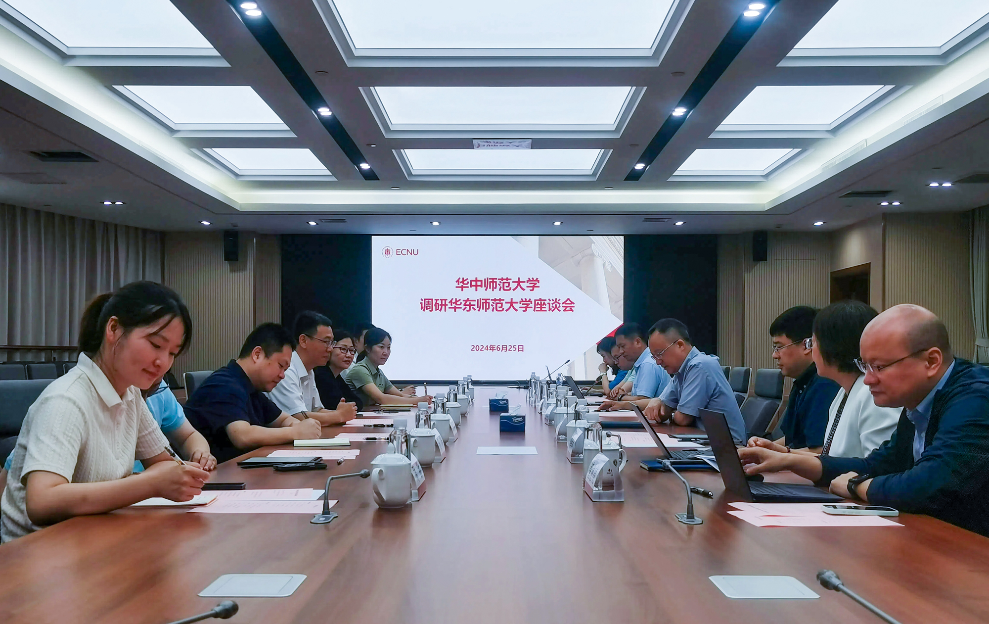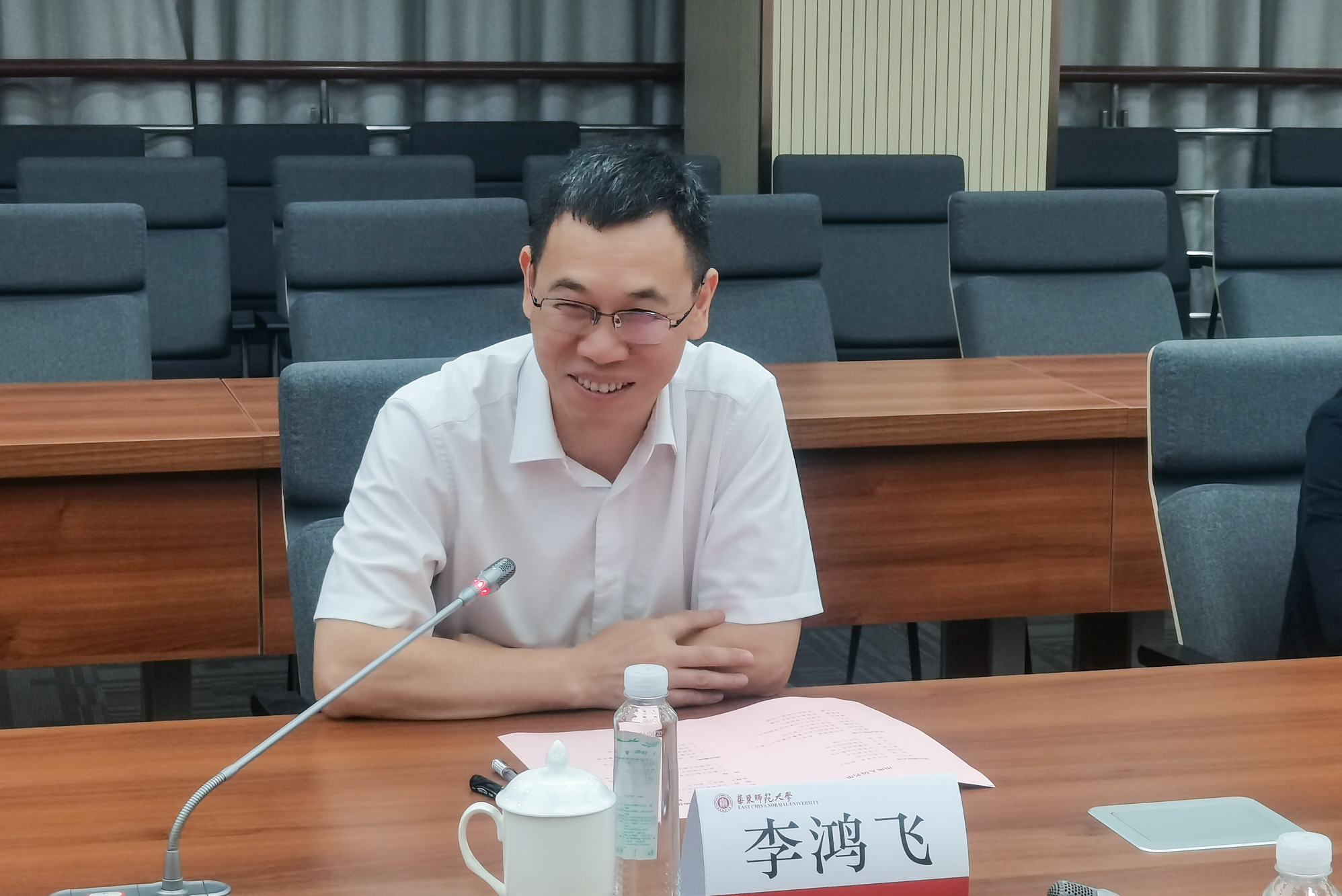 李鸿飞介绍了华中师范大学的基本情况,并表示此次来访重点调研学习华东师大在“双一流”建设、数据治理、政策研究、学科建设服务区域经济社会高质量发展等方面的经验举措。