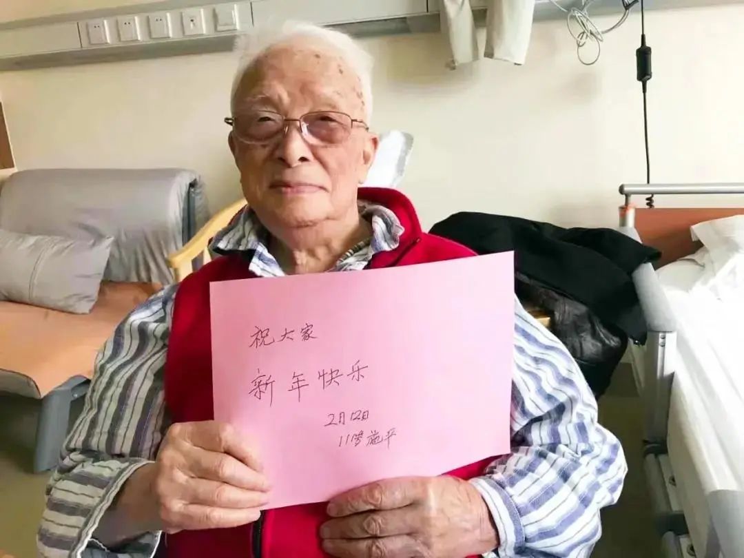 2021年新春佳节,111岁施平在病房向大家问候新年
