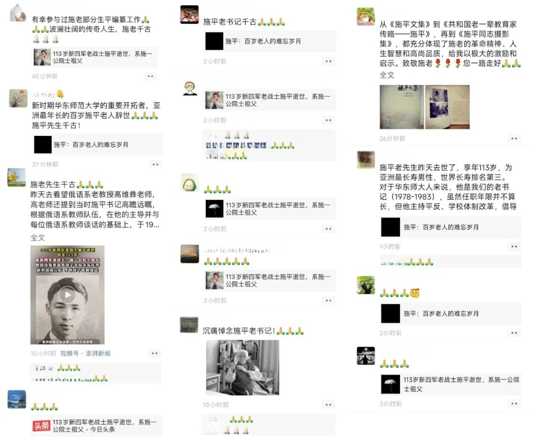 师生校友们对施平老书记逝世表达深切缅怀