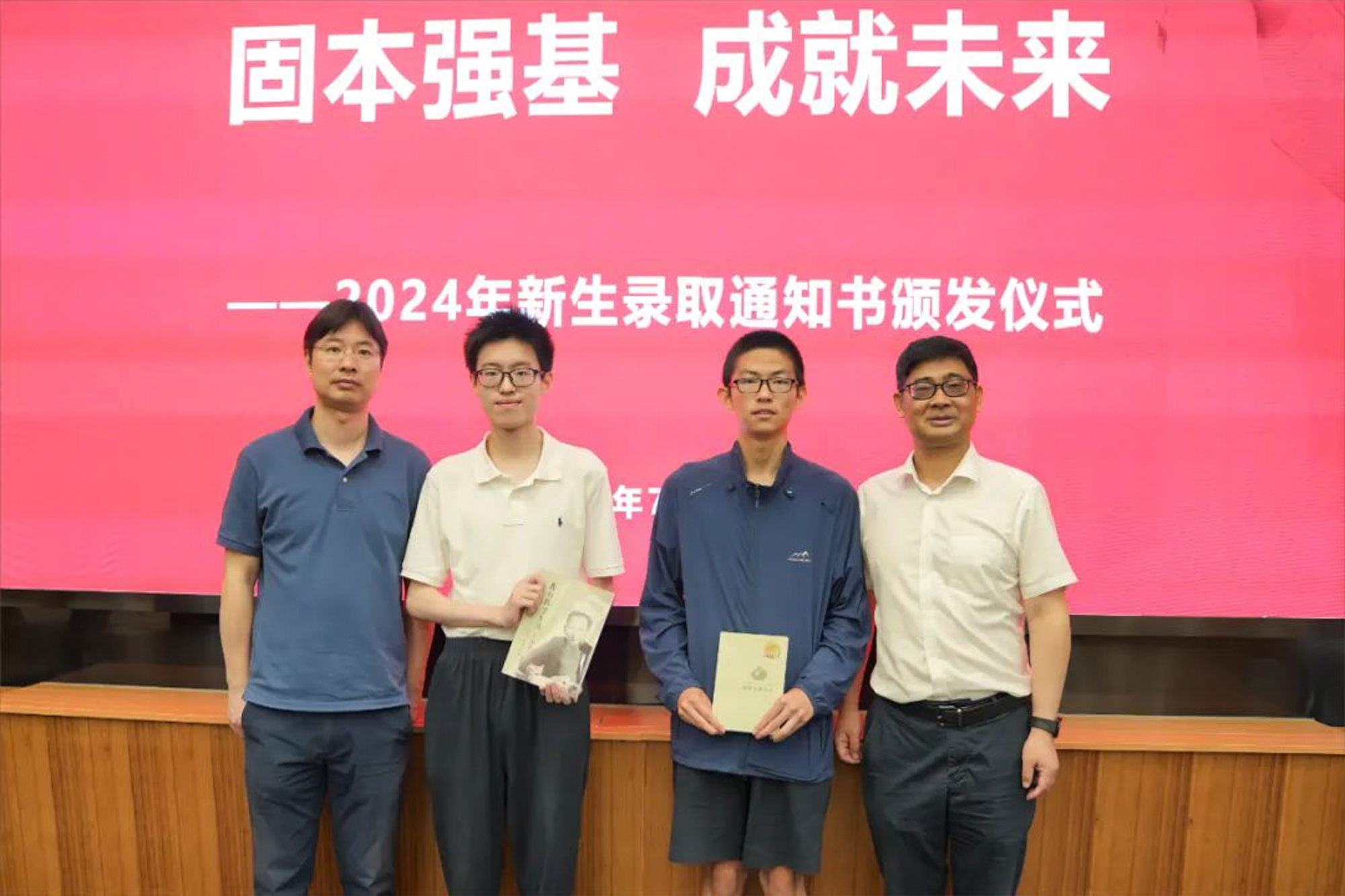 上午,永利皇宫登录官网2024年新生录取通知书颁发仪式在普陀校区举行,副校长戴立益为三位新生代表颁发录取通知书。这三位同学分别是编号为0001、0002、0003的录取通知书获得者。其中,徐弘毅同学和白天程同学被录取至数学与应用数学(强基)专业,陈泽同学被物理学(强基)专业录取。他们在强基计划校测中表现突出。