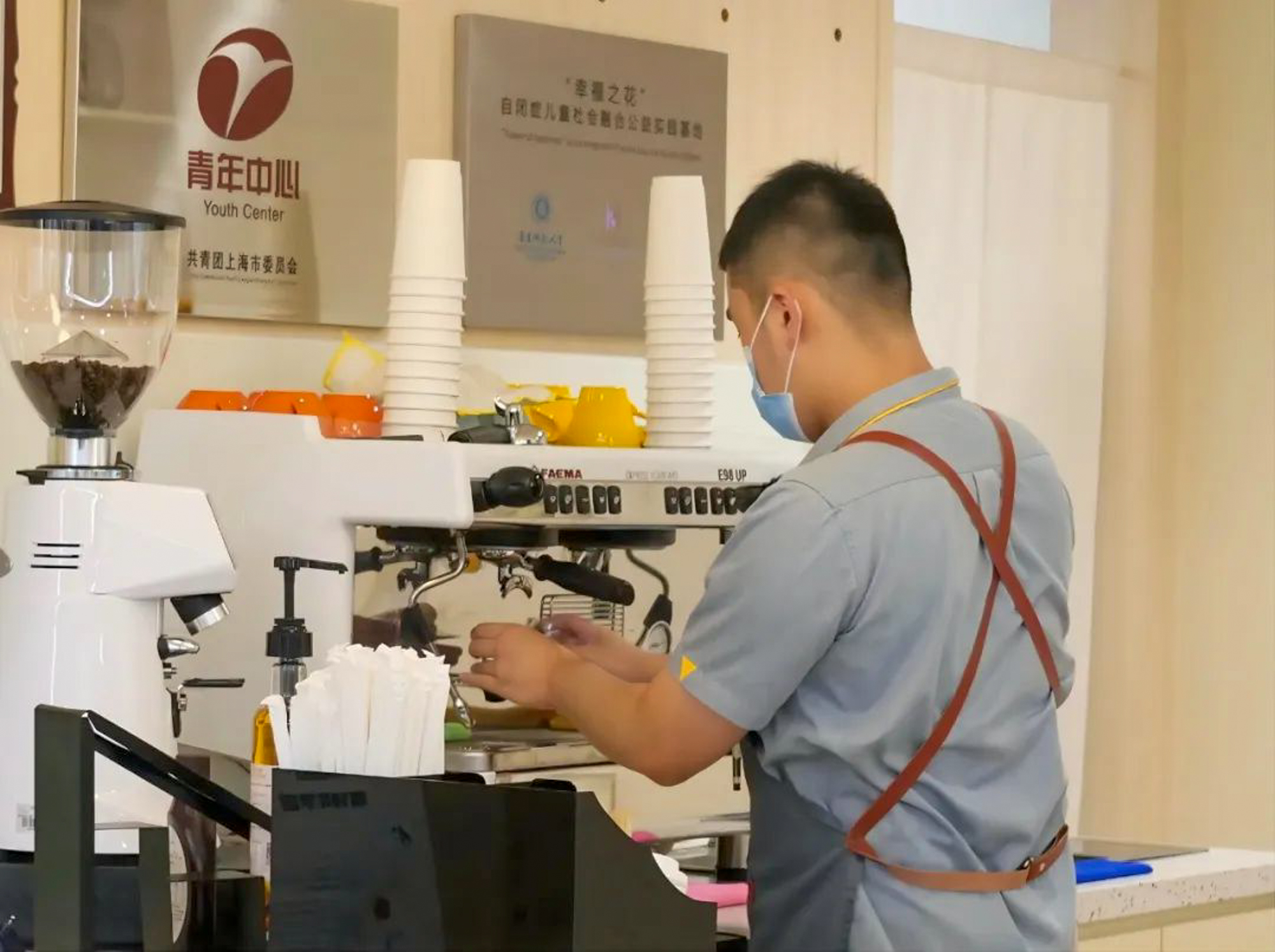 最初让王紫妍决心投入孤独症的就业康复事业中的小C,也幸运地在他们的帮助下成为了一名职业咖啡师。