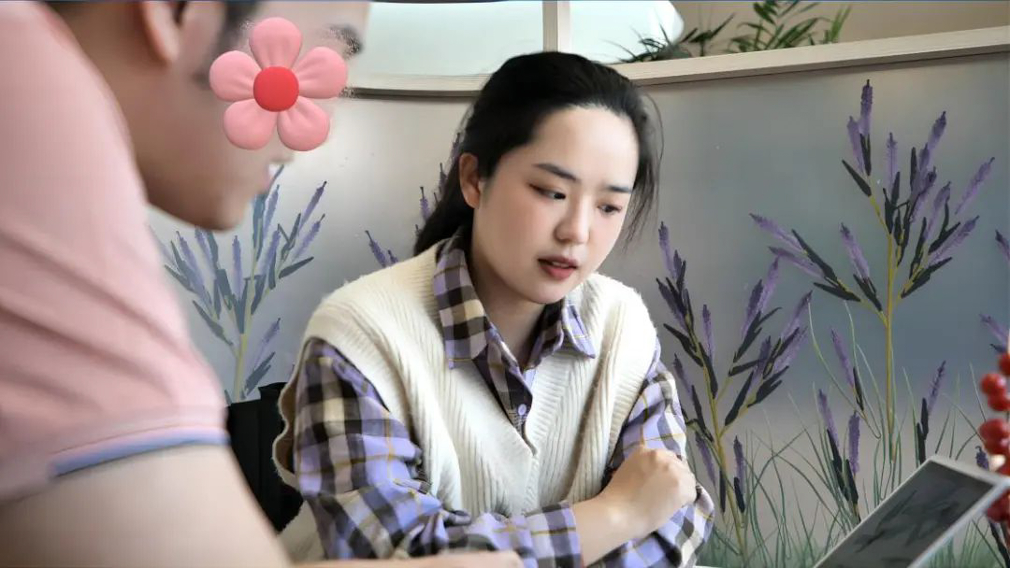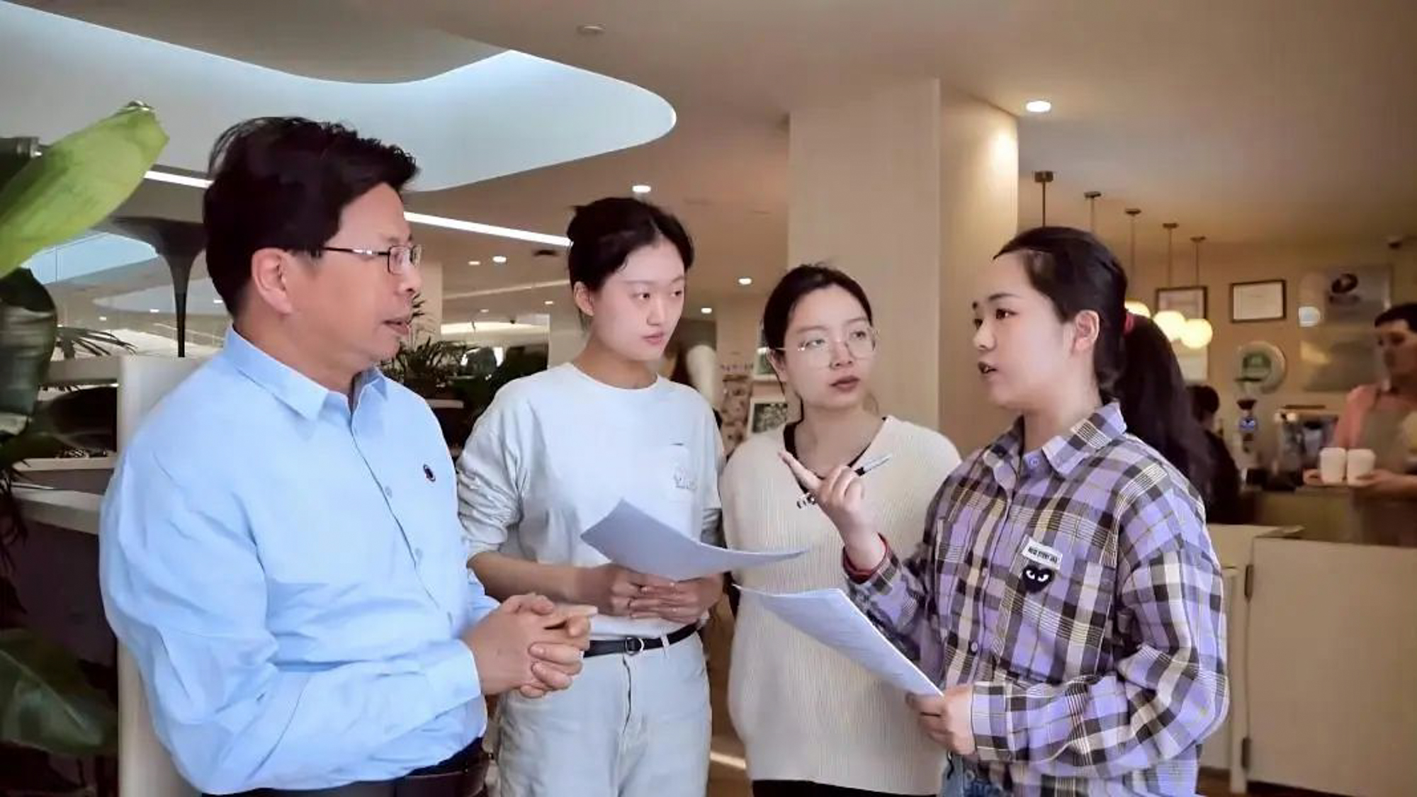 王紫妍与导师、团队成员讨论课题内容
