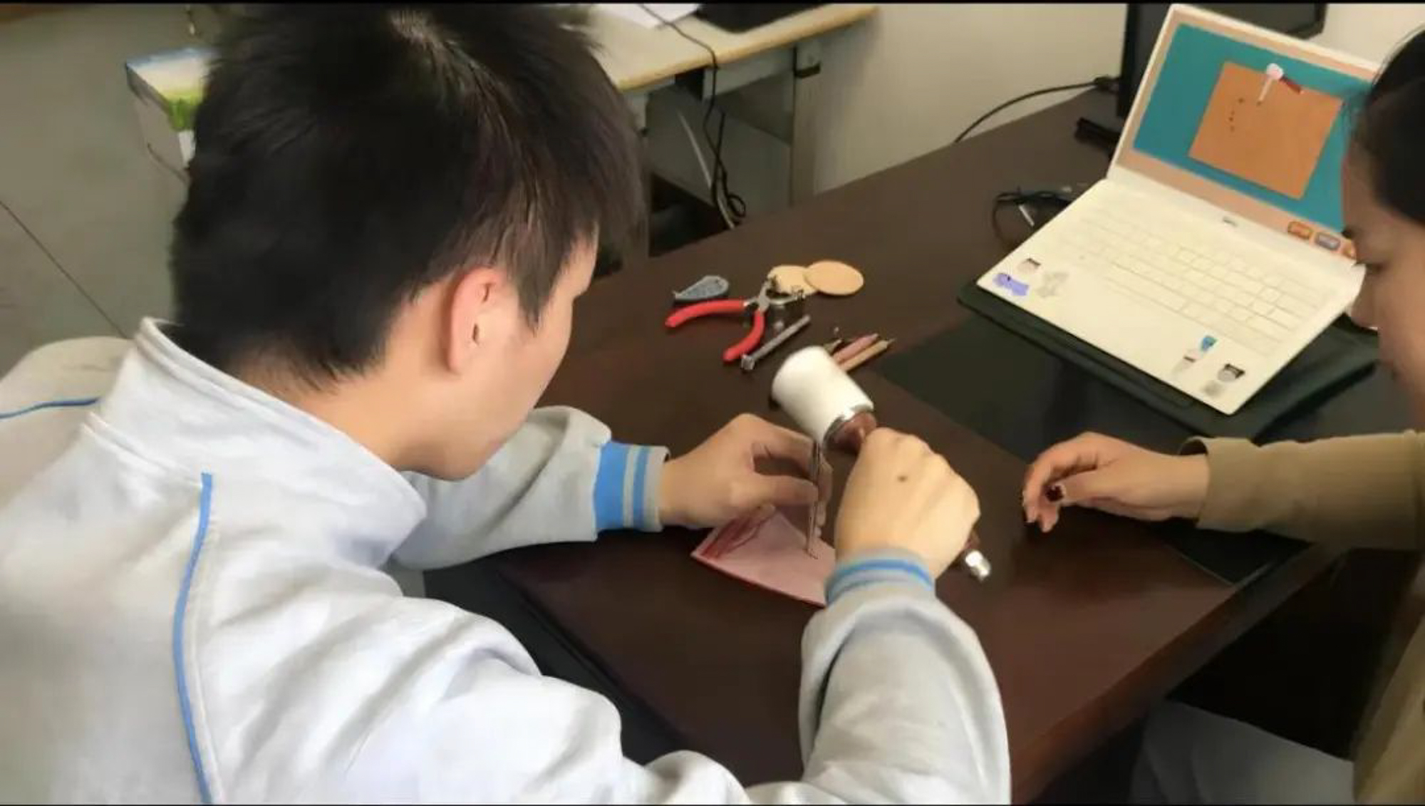 王紫妍运用康复游戏指导孤独症青年进行皮雕制作训练