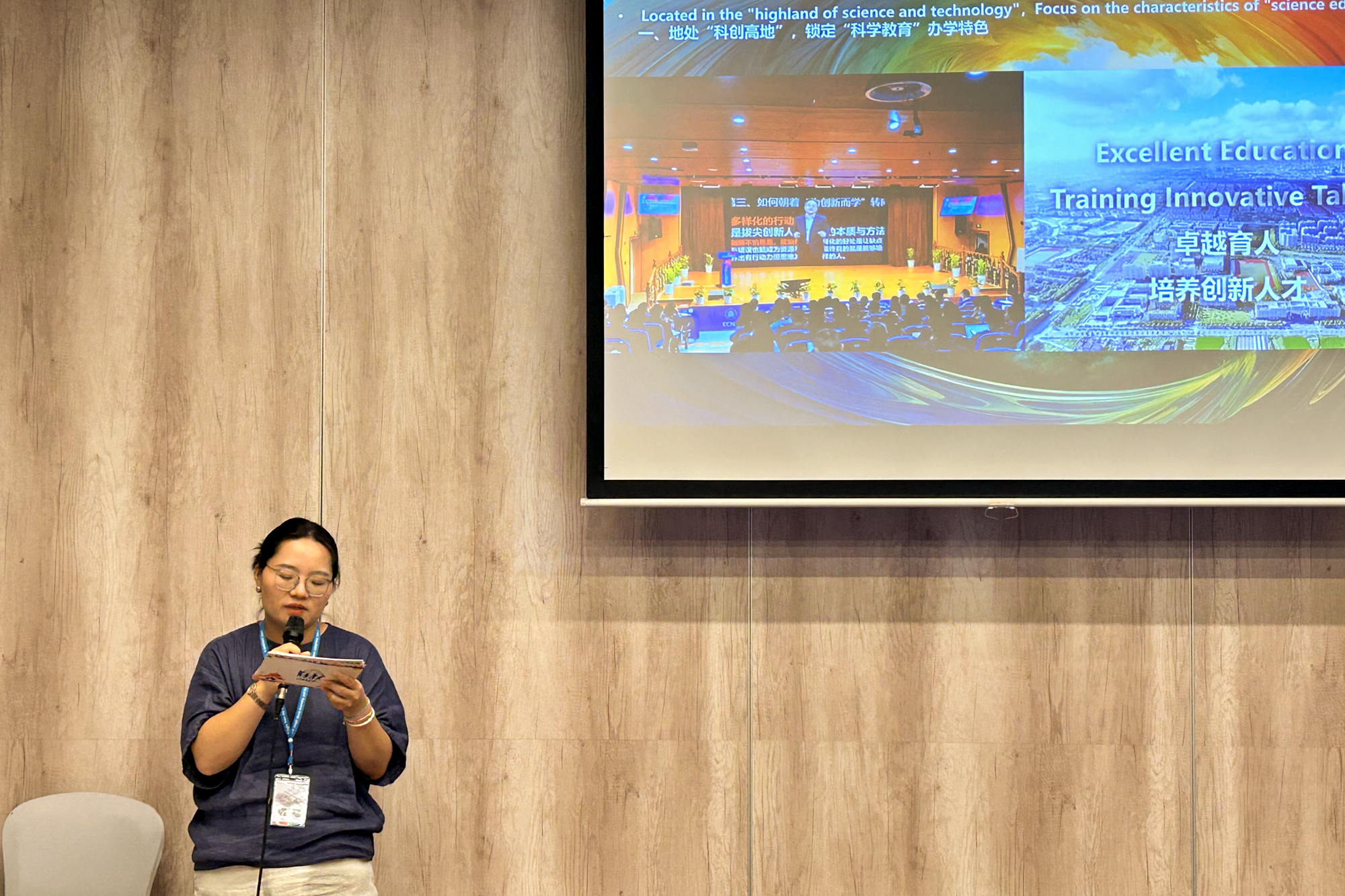 华东师大附属紫竹幼儿园骨干教师沈荣做了题为“依托馆校深度合作,赋能课程创新实践”的报告。他详细阐述了紫竹幼儿园如何依托与上海科技馆、上海自然博物馆等顶级科普场馆的深度合作,创新性地开发了博物馆系列课程,将教育资源从园内延伸至社会大课堂,为幼儿打开了探索世界的新窗口。这一合作模式不仅提升了幼儿的学习体验,也为高校与幼儿园协同培养优秀幼教人才开辟了新的途径。