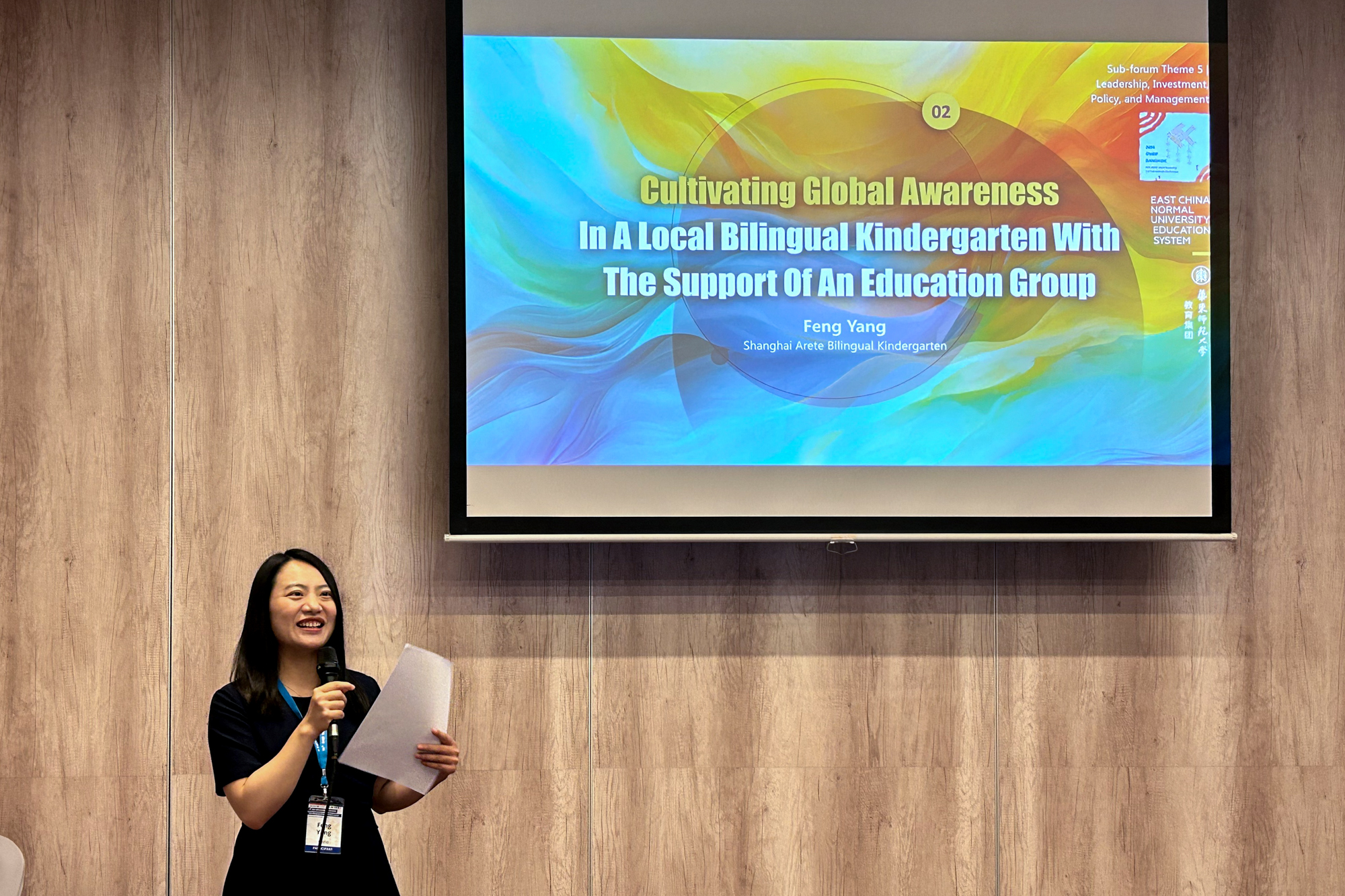 上海华旭幼儿园园长杨凤的报告“基于教育集团支持的本地双语幼儿园如何培养儿童的国际情怀”,则展现了教育集团对国际化办园的探索。她介绍了华旭幼儿园如何利用永利皇宫登录官网的国际国内合作网络、课程资源和教师专业发展支持,通过实施双语教育、跨学科整合学习内容,营造了一个多元文化交融的学习环境,有效促进了幼儿对不同文化的理解和尊重,培养了他们的国际视野和国际情怀。