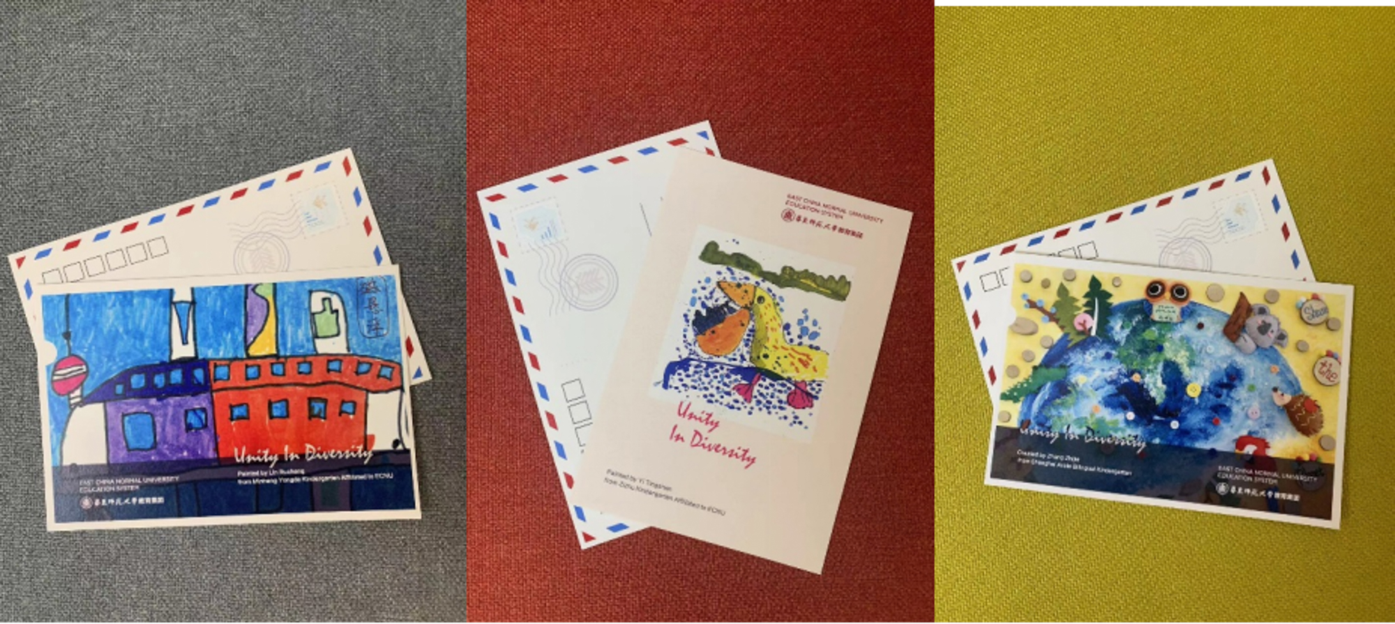 教育集团特别精选了20张来自集团幼儿园的儿童作品,设计了专场纪念明信片,赠送给与会的国际嘉宾。