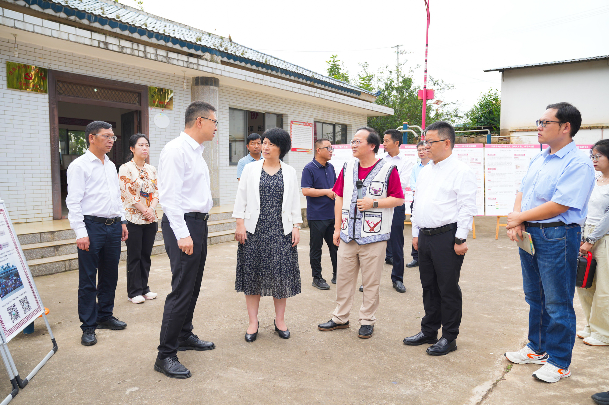 守望相助谋发展。7月24日一早,梅兵一行前往寻甸县金所街道泽铁社区泽铁村,看望派驻干部,详细了解帮扶工作,听取了文军教授领衔的寻甸县“乡村新内生发展”项目推进情况,和美术学院师生近年来开展的绿美乡村建设及美育夏令营情况。