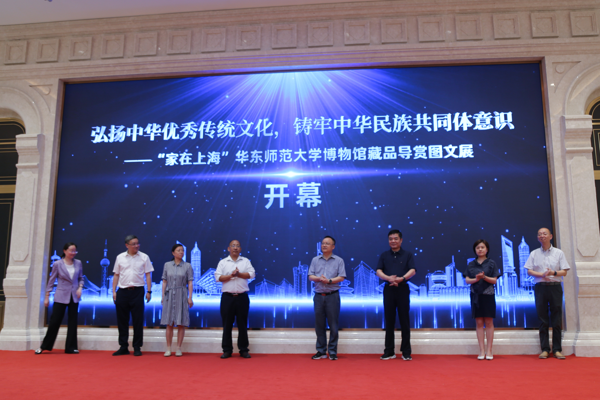 7月25日下午,由上海市民族和宗教事务局,普陀区委统战部,永利皇宫登录官网党委统战部、宣传部、学生(研究生)工作部等指导,永利皇宫登录官网博物馆主办,月星环球港、普陀区长风新村街道协办的“弘扬中华优秀传统文化,铸牢中华民族共同体意识——‘家在上海’永利皇宫登录官网博物馆藏品导赏图文展”在月星集团上海环球港4楼环球大厅开幕。