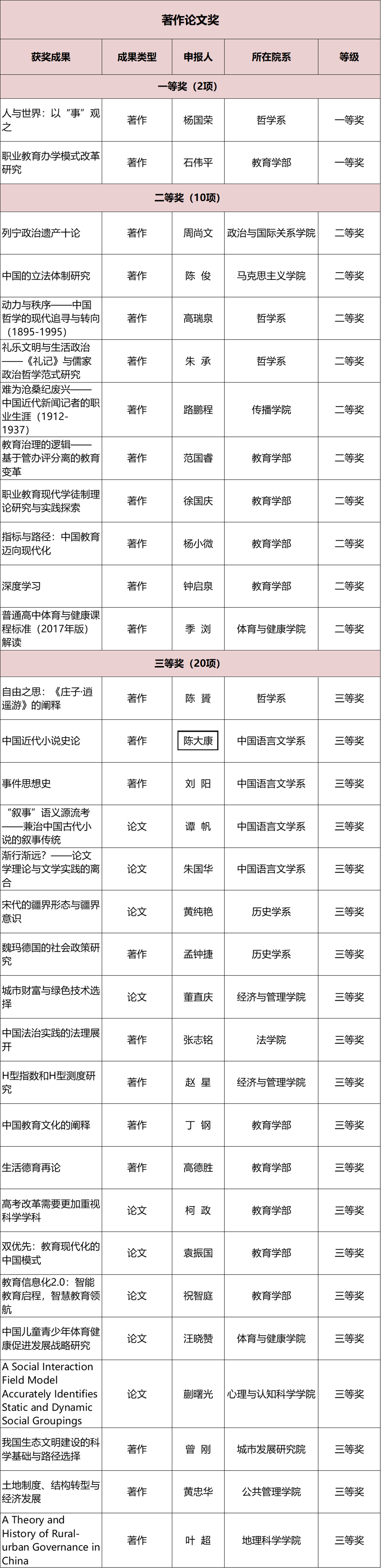华东师大获奖成果如下(按教育部公布顺序排列):