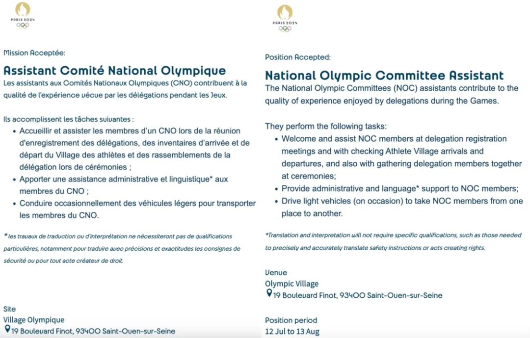 2024巴黎奥运会志愿者offer