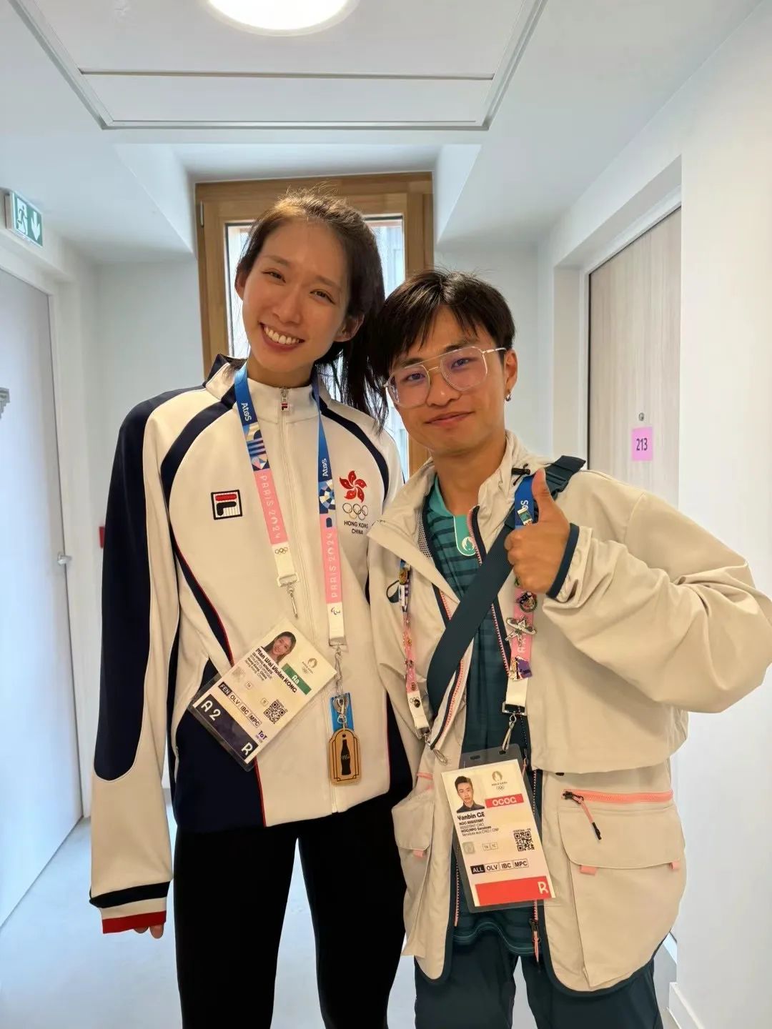 与中国香港队重剑运动员江旻憓(2024巴黎奥运会重剑项目冠军)合影
