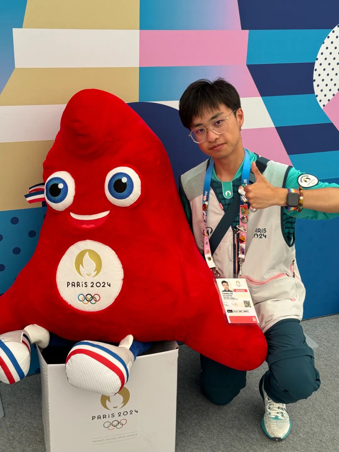 与2024年巴黎奥运会吉祥物“弗里热”合影