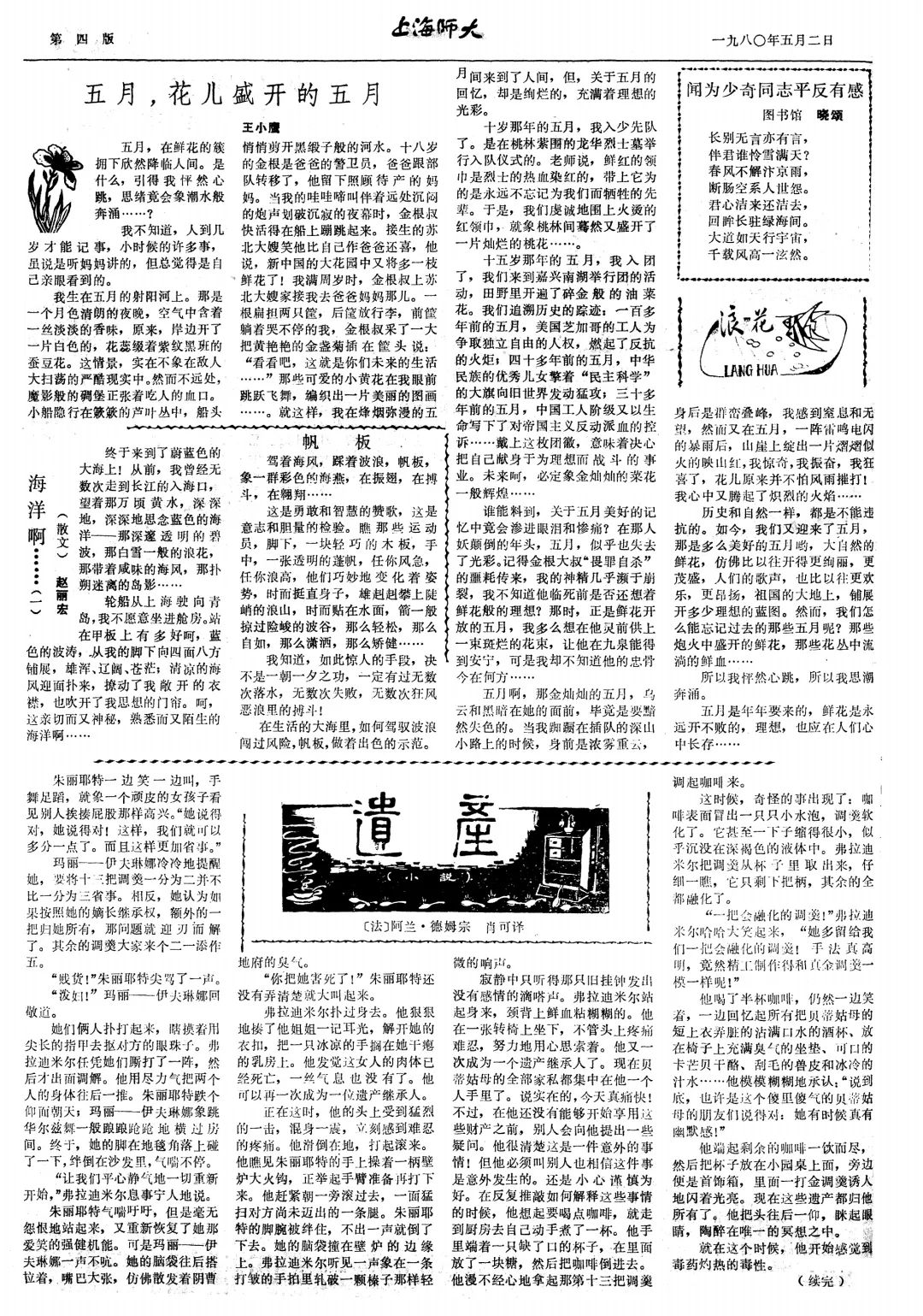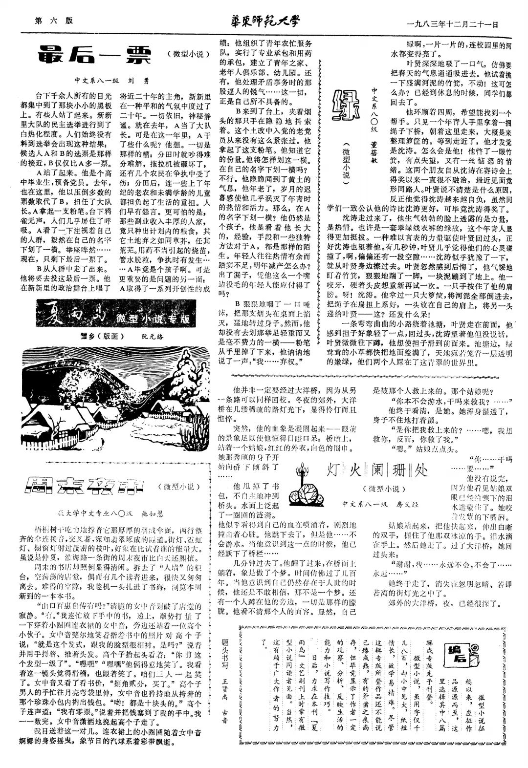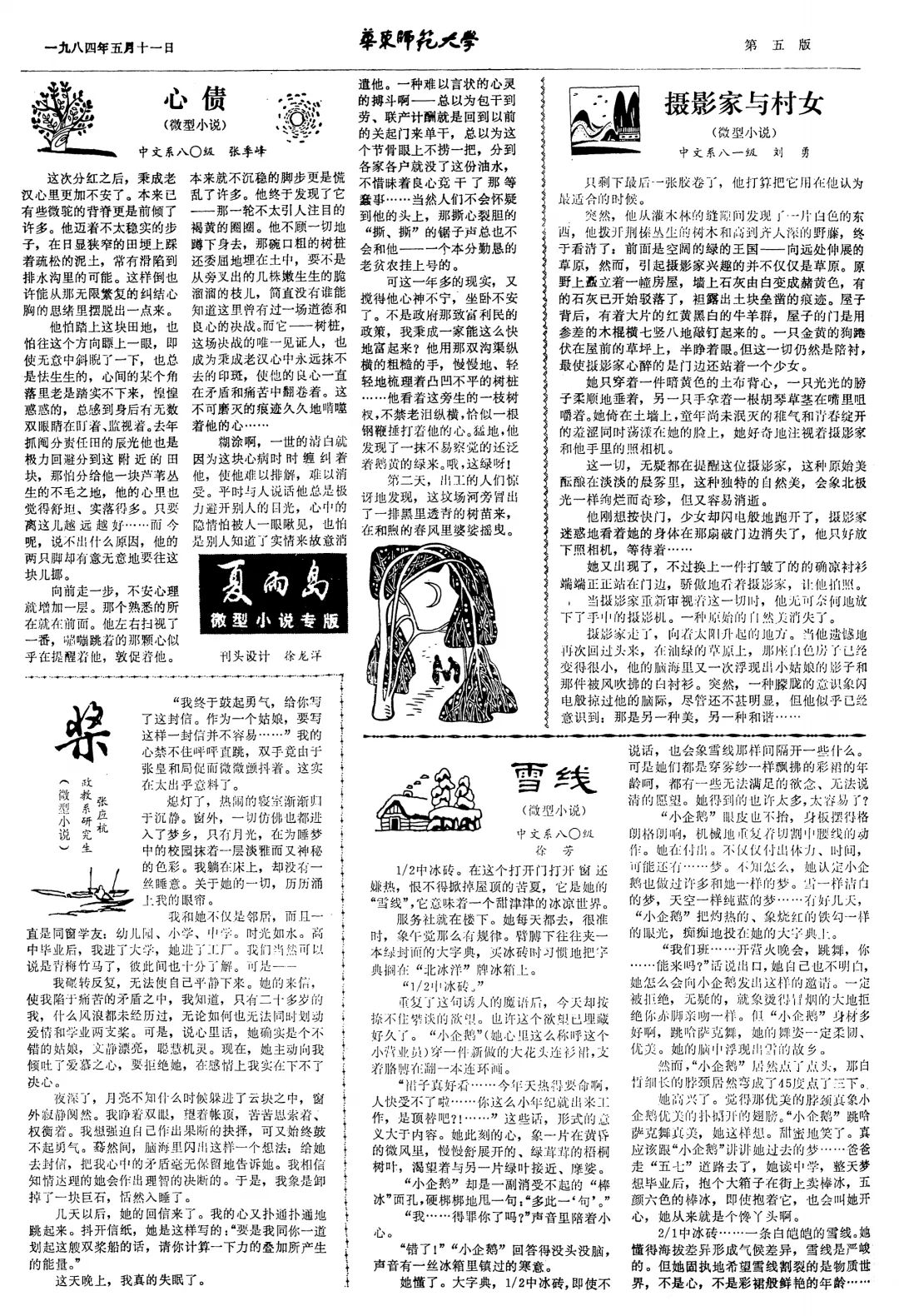 赵丽宏、王小鹰、陈丹燕、格非(原名刘勇)、徐芳等著名作家学生时代在校报副刊“夏雨岛”上发表作品