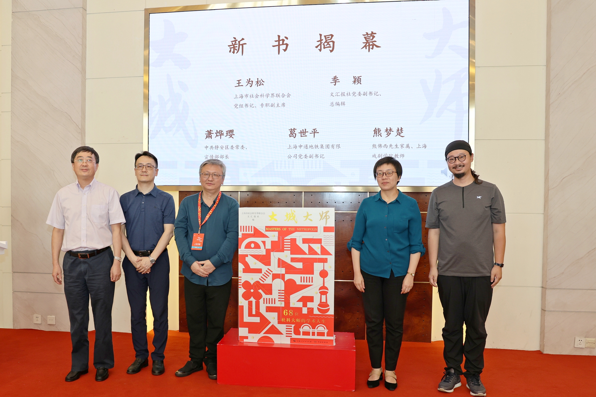 上海市社会科学界联合会党组书记、专职副主席王为松,文汇报社党委副书记、总编辑季颖,中共静安区委常委、宣传部部长萧烨璎,上海申通地铁集团有限公司党委副书记葛世平,熊佛西先生家属、上海戏剧学院教师熊梦楚共同为新书揭幕