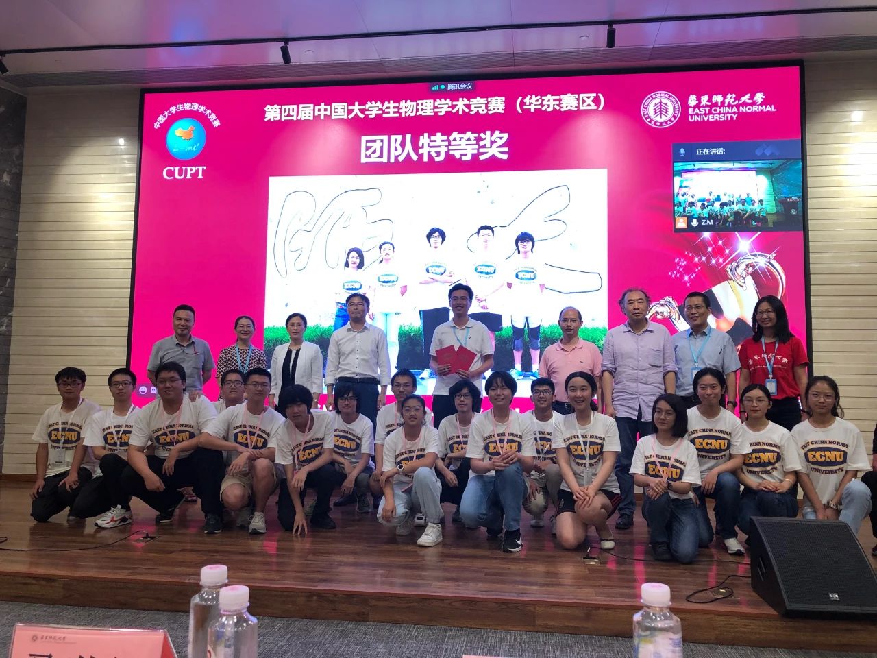 胡悦(前排右五)和大学生物理学术竞赛的指导教师团队与集训队员们