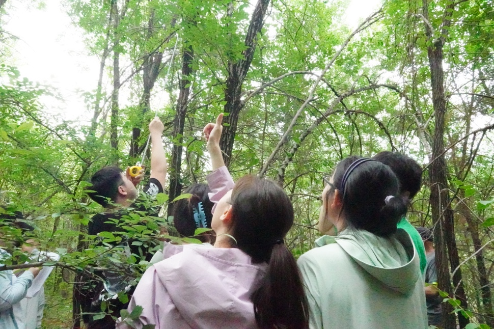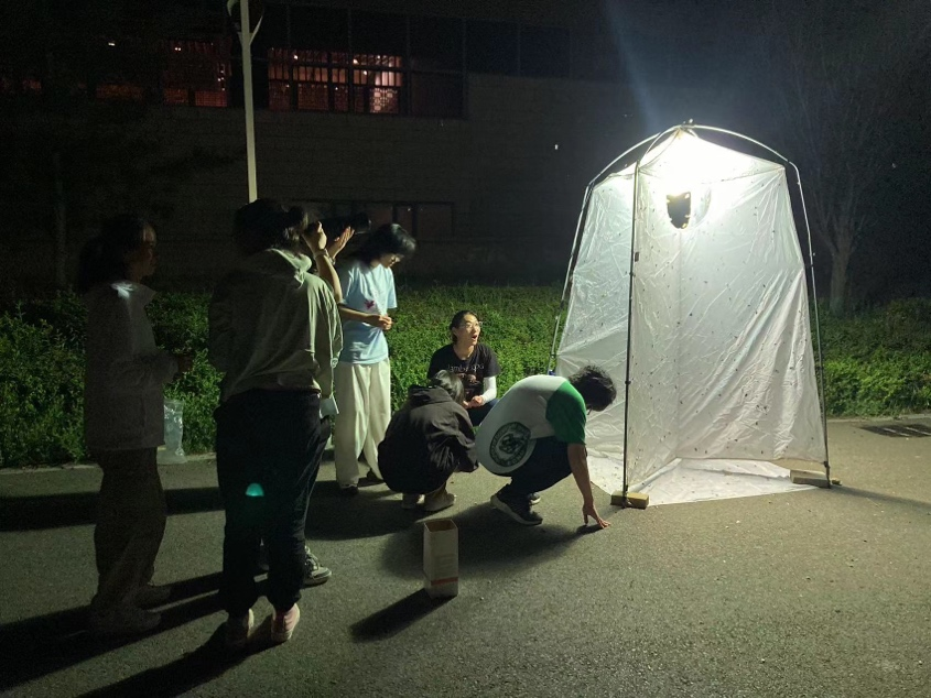 师生在南泥湾进行昆虫灯诱