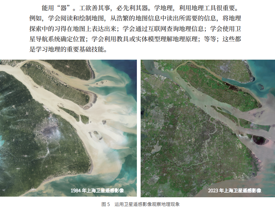 现代信息技术手段的应用,为教育开创了崭新的育人环境,地理信息技术(GNSS、RS、GIS,合称3S)是地理教学的工具和学习主题之一。本套教材融合信息技术以及地理信息技术的应用,提倡运用 3S 辅助教学。