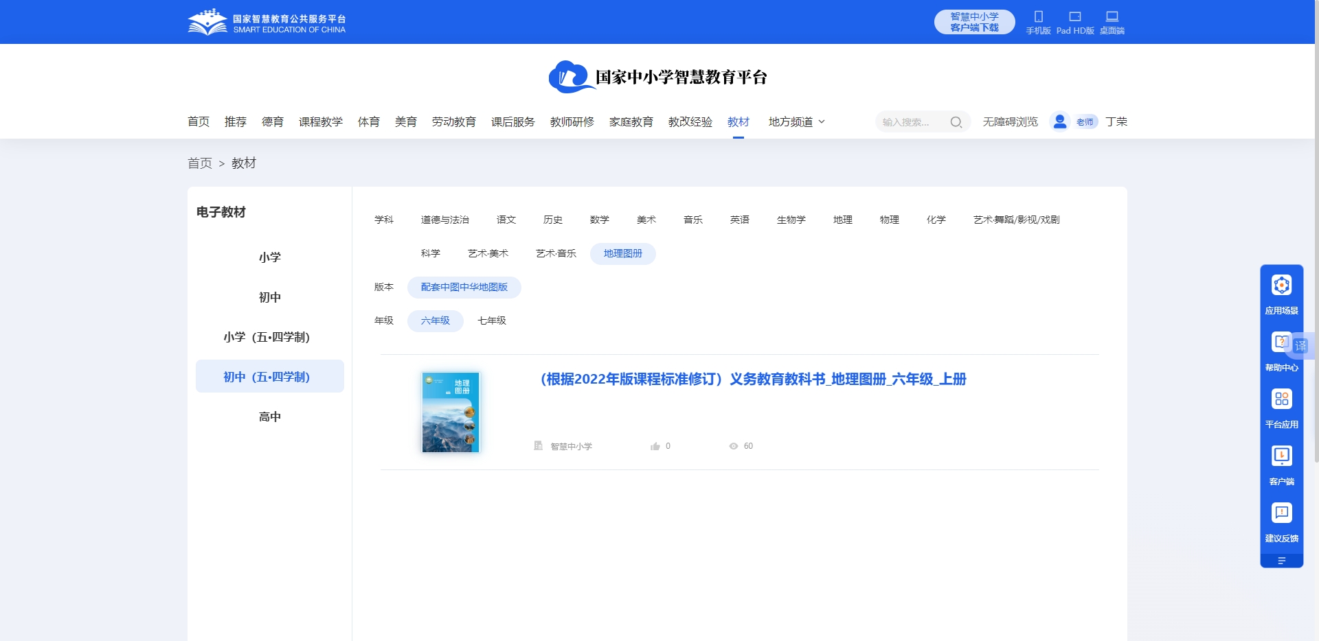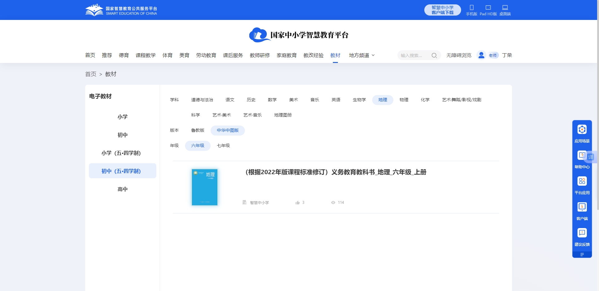 上海版义务教育初中《地理》教材可在国家中小学智慧教育平台免费在线查看: