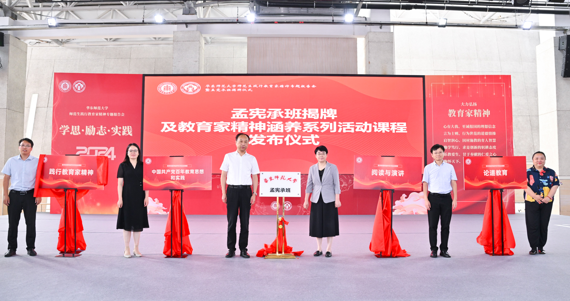 戴立益为孟宪承班揭牌,华春燕、乔德礼、吴平颐、庄瑜和吴薇共同发布“教育家精神涵养系列活动课程”。该系列活动课程将协同孟宪承班建设,并面向全校学生开放,突破常规教学与育人模式限制,创新授课形式,促进第一课堂与第二课堂的深度融合,具体包括“践行教育家精神”“中国共产党百年教育思想和实践”“阅读与演讲”“论道教育”等四门活动课程。