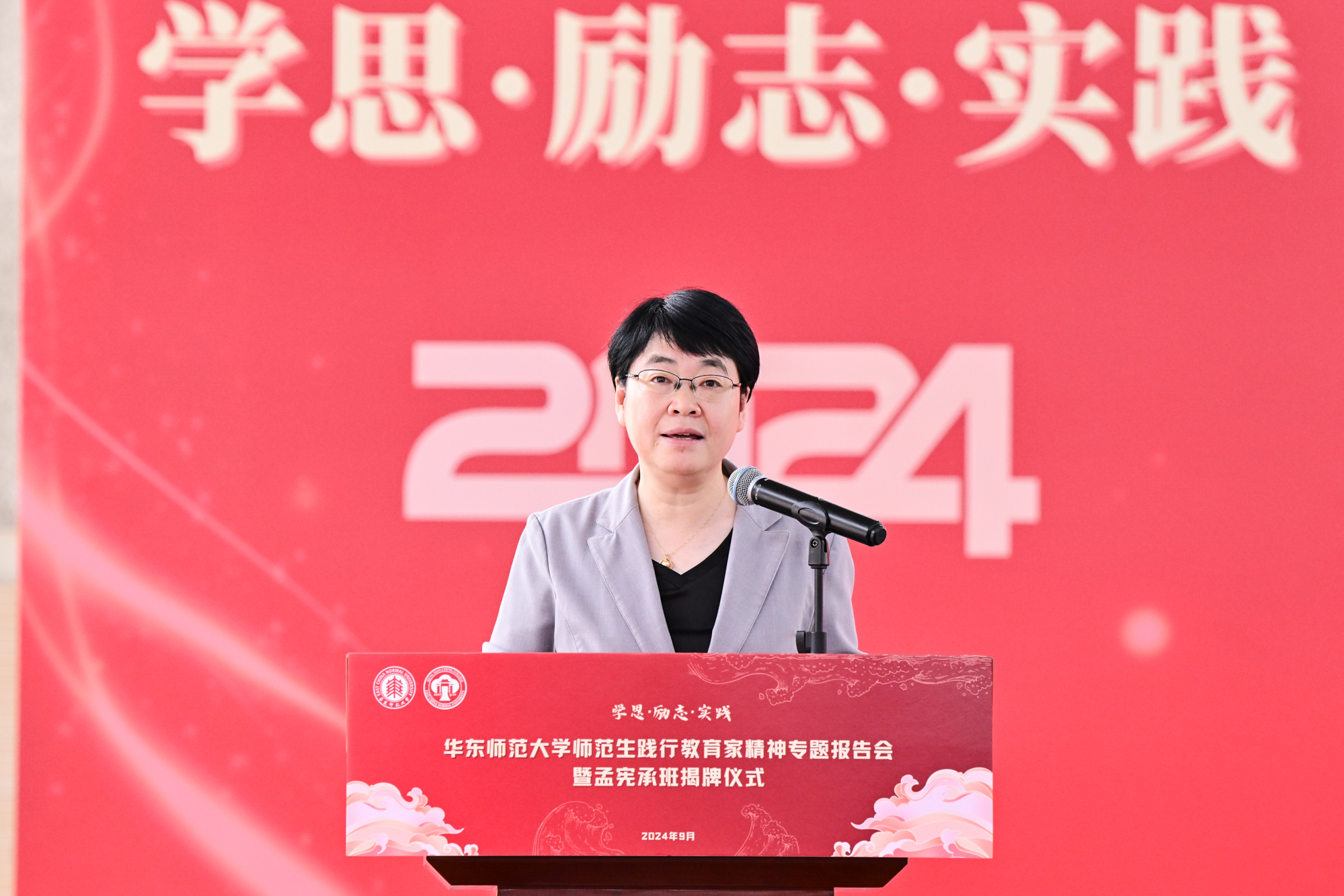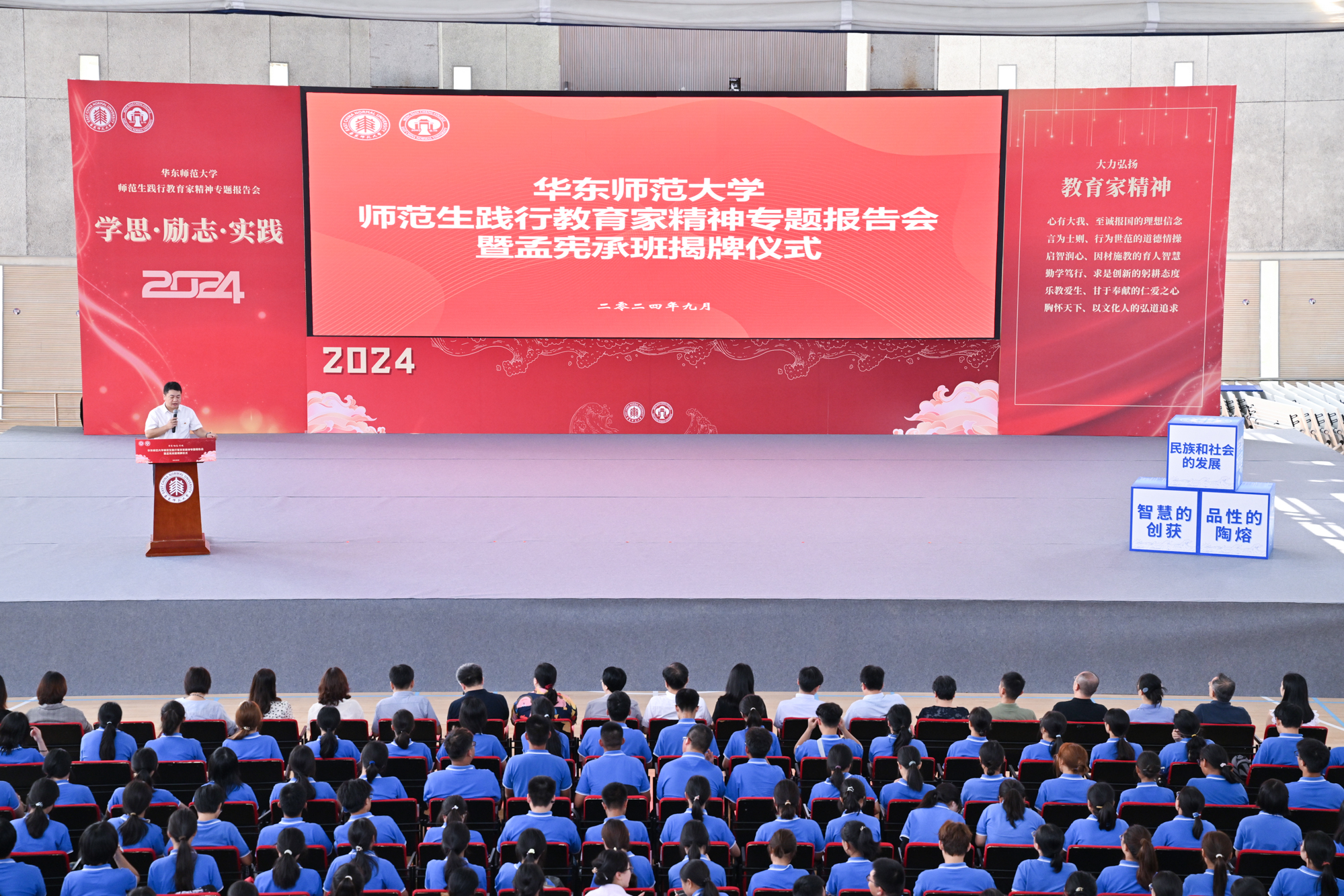 为深入学习宣传贯彻全国教育大会精神,弘扬与传承教育家精神,9月12日上午,永利皇宫登录官网孟宪承书院师范生践行教育家精神专题报告会暨孟宪承班揭牌仪式在闵行校区举行。华东师大副校长戴立益,教师教育学院副院长华春燕,研究生院培养办公室副主任乔德礼,党委学生(研究生)工作部副部长庄瑜,教务处处长助理吴平颐,孟宪承书院党委书记兼院长吴薇与各专业院系教学副院长、成长导师代表出席。孟宪承书院党委副书记梁宏亮主持活动。