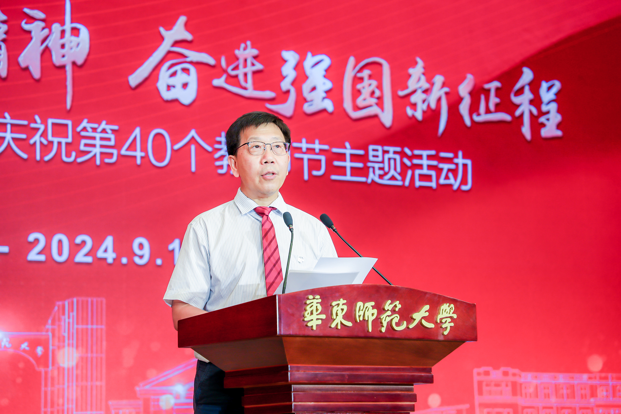 校长钱旭红代表学校向长期奋战在教学科研和管理服务岗位上的全体教职员工致以诚挚的节日问候,向持续关心支持学校改革发展的离退休老同志和广大校友们表示衷心的感谢,向刚刚加入华东师大大家庭的新成员们表示热烈的欢迎。