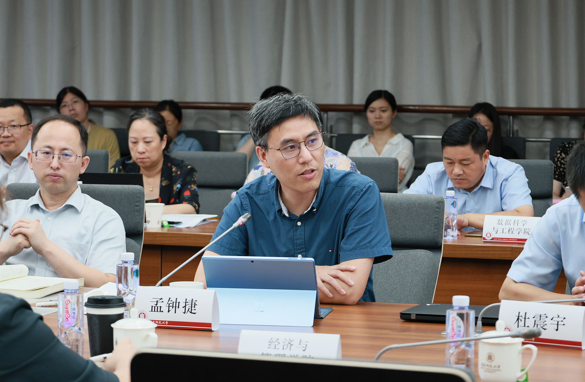 人事人才重点工作汇报环节,杜震宇从教师思政与师德师风建设工作、人才工作、师资和博士后工作、薪酬福利工作等方面对本学期工作要点进行了介绍,并传达了国家、上海市、学校重要人才政策精神。