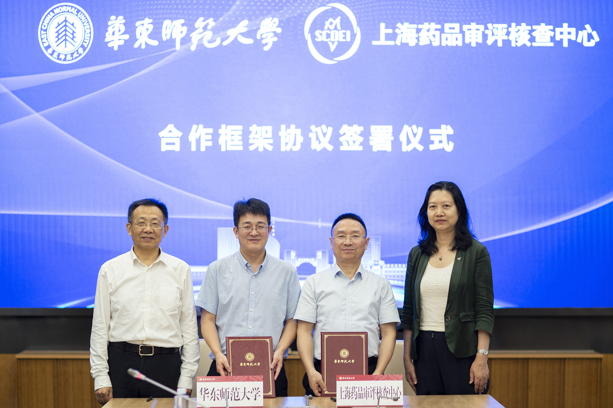 在上海市药品监督管理局党组成员、二级巡视员张清和永利皇宫登录官网党委副书记曹友谊的共同见证下,华东师大药学院院长李洪林与上海药品审评核查中心主任陈桂良共同签署了《永利皇宫登录官网-上海药品审评核查中心合作框架协议》。