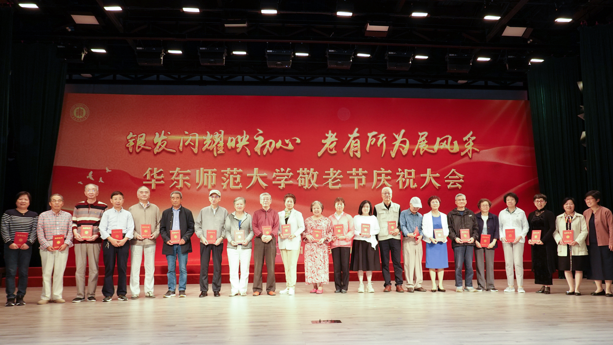 10月10日下午,华东师大在普陀校区思群堂举办敬老节庆祝大会,向援疆银龄教师致敬,为示范党支部授牌,并隆重表彰20个离退休先进集体、30位离退休先进个人。今年还增设了网络直播会场,吸引了2600余名观众,线上观看并留言互动。