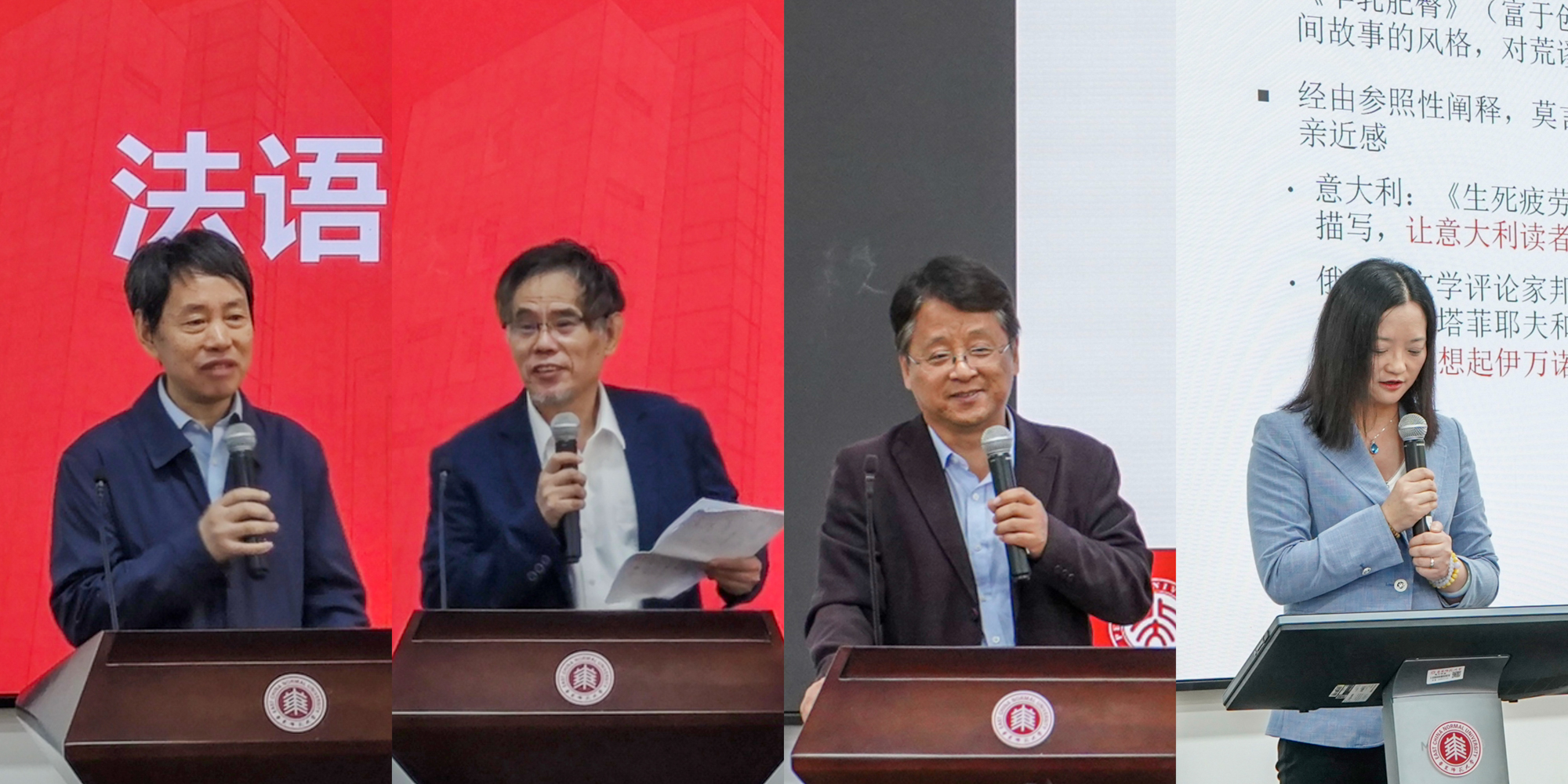 12日的主旨发言环节分别由翁冰莹教授和左百瑶副教授主持。户思社教授、杜青钢教授、刘云虹教授、杨国政教授分别就“中国法语学科未来发展”“法语文学领域的个人治学经验”“莫言作品的法国译介”“法语教学先驱贺之才生平考证”等主题进行了精彩发言。王战教授、张弛教授、赵佳教授和袁筱一教授则分别聚焦“区域国别研究心得”“法语学者的主体意识”“地理诗学”以及“北非法语文学的世界化进程”等前沿话题,为研究者们提供了宝贵启示。