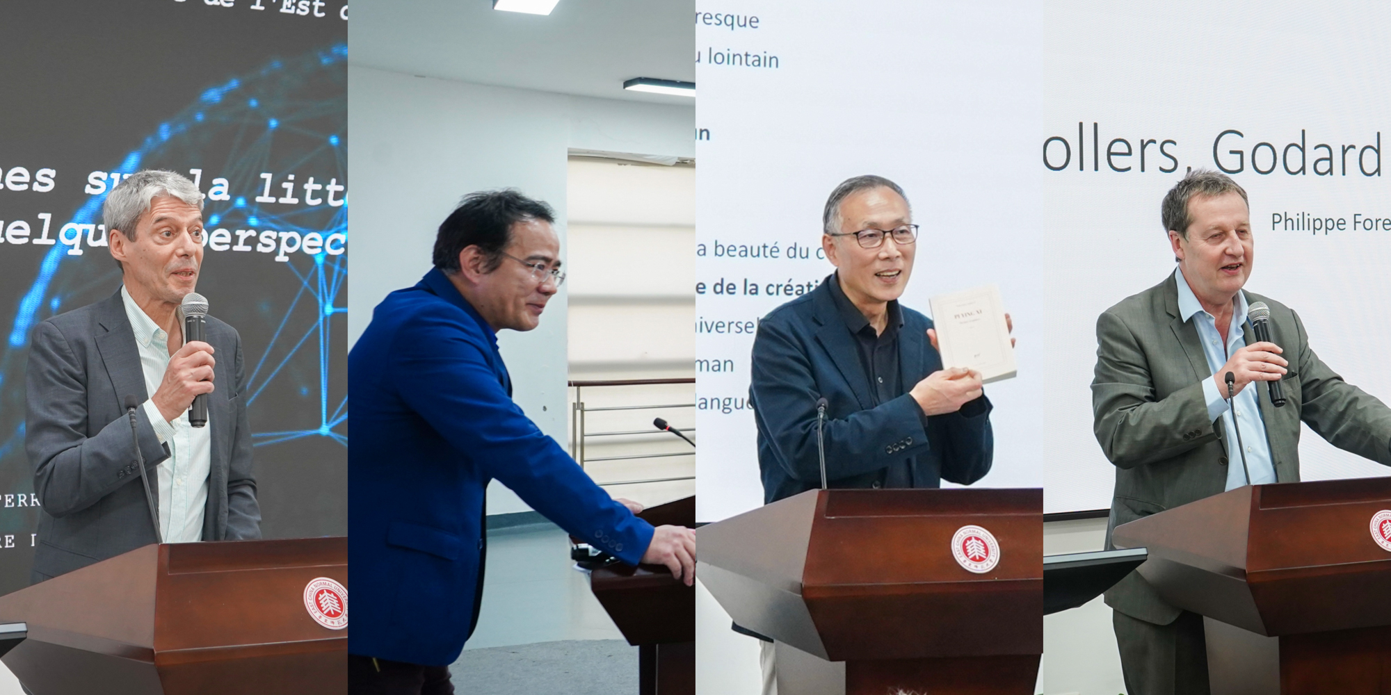 当天,特邀嘉宾主旨发言环节由金桔芳副教授主持。让-马克·穆拉教授、董强教授、张寅德教授和福雷斯特教授分别围绕“世界文学研究现状与挑战”“米兰·昆德拉对欧洲问题与反现代性的思考”“福雷斯特小说《皮影戏》中的‘共同’主题及跨文化问题”“索莱尔斯和戈达尔与中国的不解之缘”等话题发表了独到而深刻的见解,极大地拓宽了研究者的治学视野。