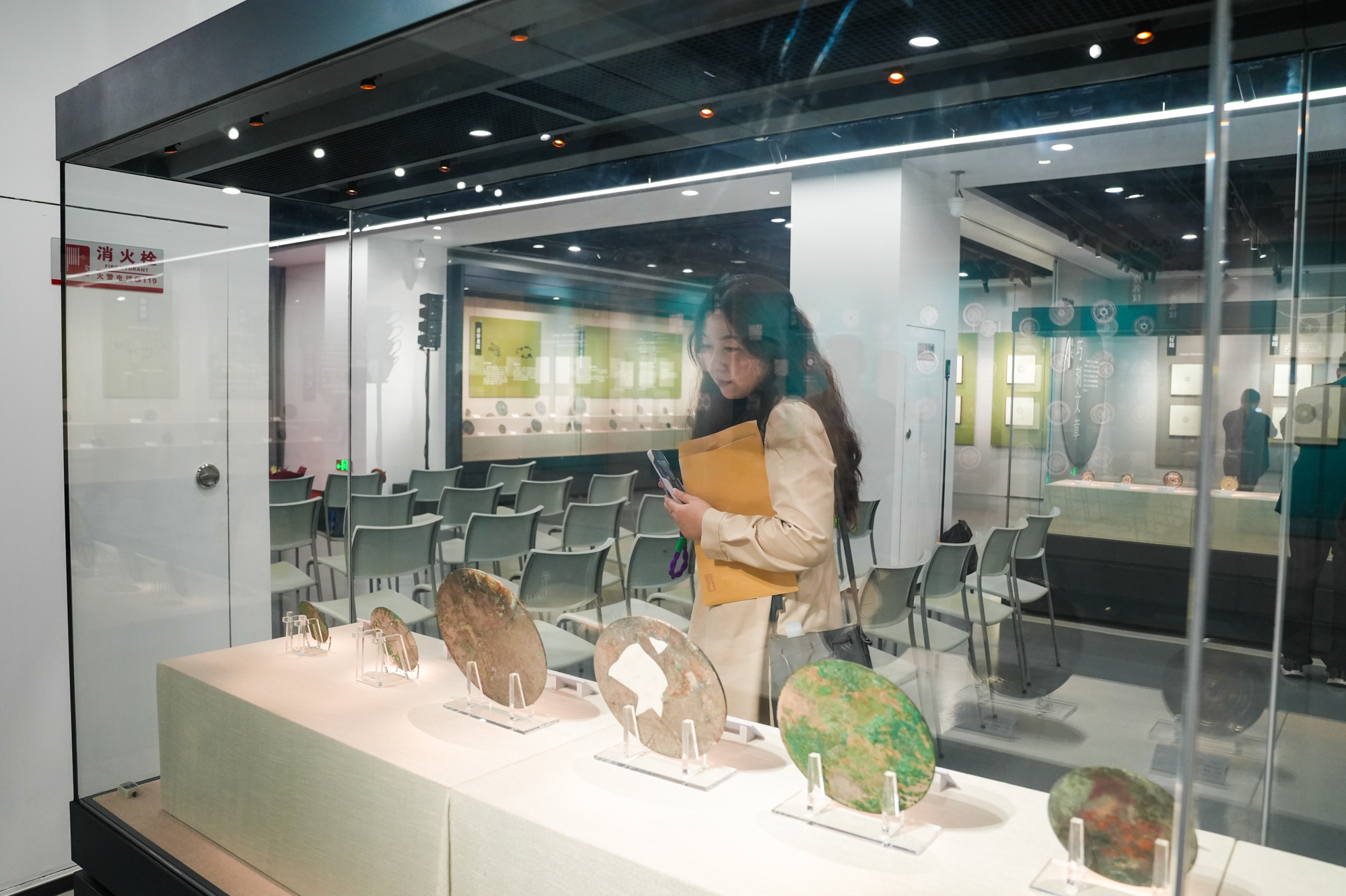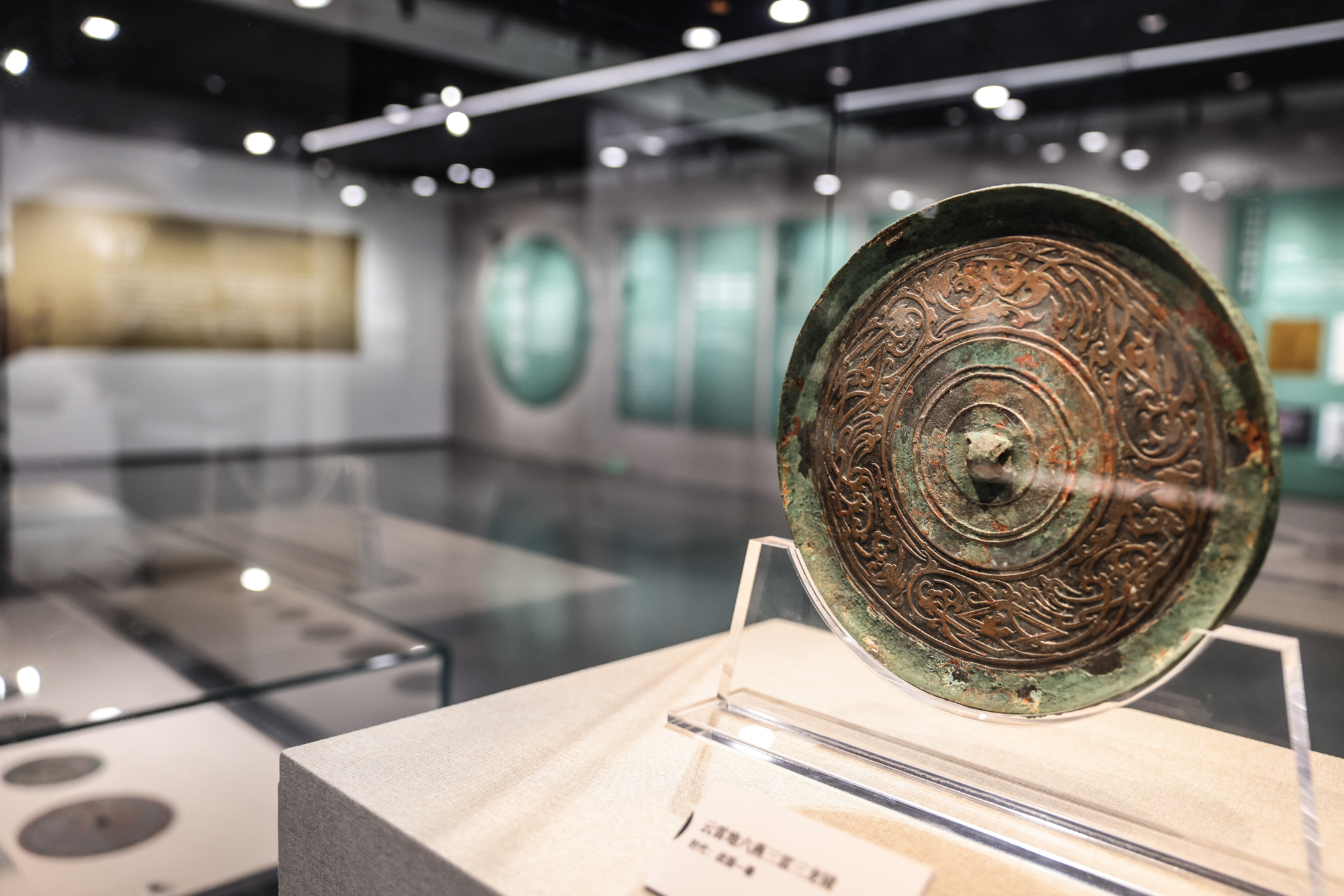 通过展示铜镜背面装饰由简单的几何纹、动物纹到铭文的演变,弦纹钮、圆钮、连峰钮等的微妙区别,讲述先秦至秦汉时期铜镜的艺术特点和历史价值,全方位、多角度地呈现了中国古代铜镜的发展脉络和艺术特色。