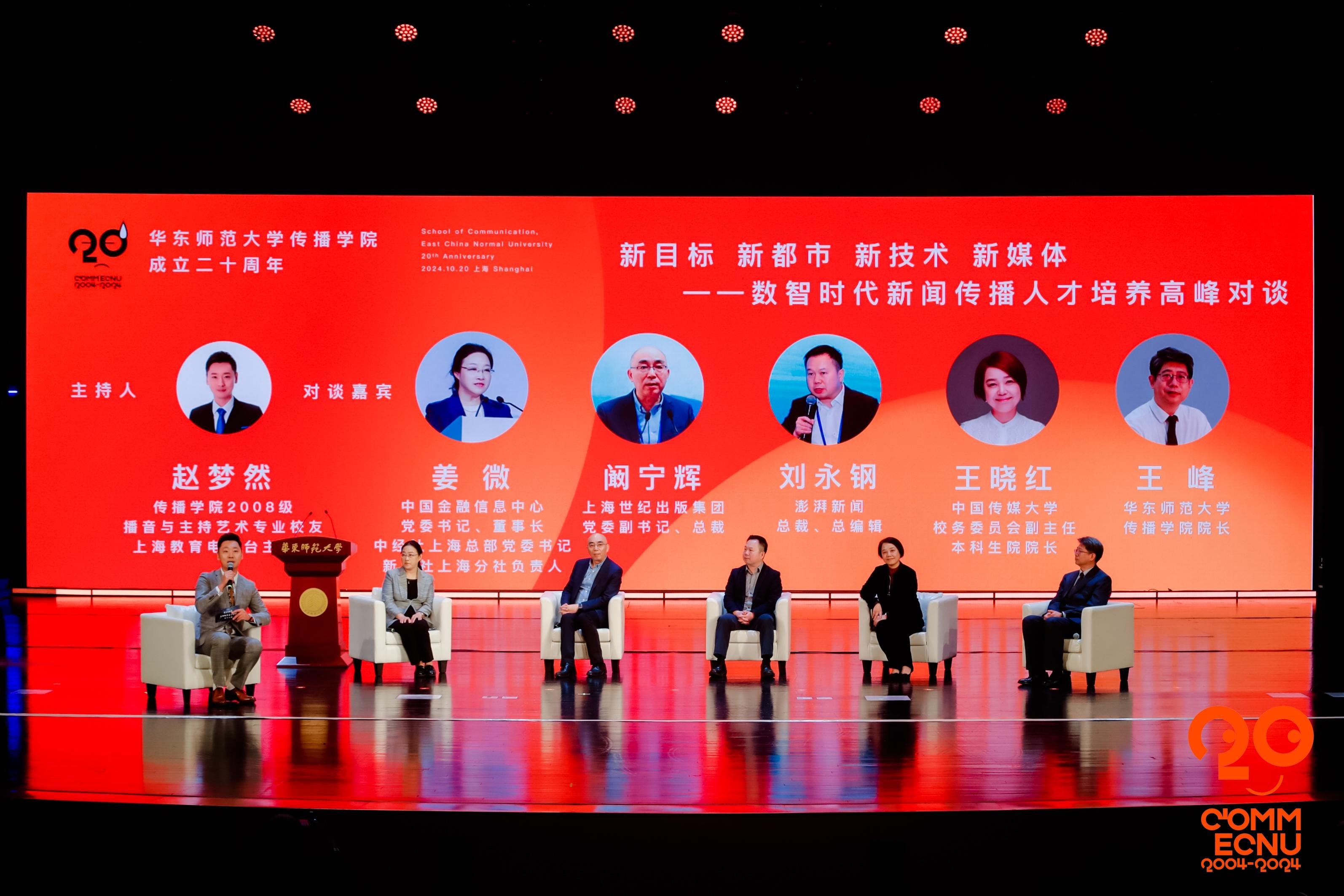 中国金融信息中心党委书记、董事长、中经社上海总部党委书记、新华社上海分社负责人姜微,上海世纪出版集团党委副书记、总裁阚宁辉,澎湃新闻总裁、总编辑刘永钢,中国传媒大学校务委员会副主任、本科生院院长王晓红和永利皇宫登录官网传播学院院长王峰等5位专家学者聚焦传播学院《改革发展展望》主旨报告,展开“新目标 新都市 新技术 新媒体——数智时代新闻传播人才培养高峰对谈”。