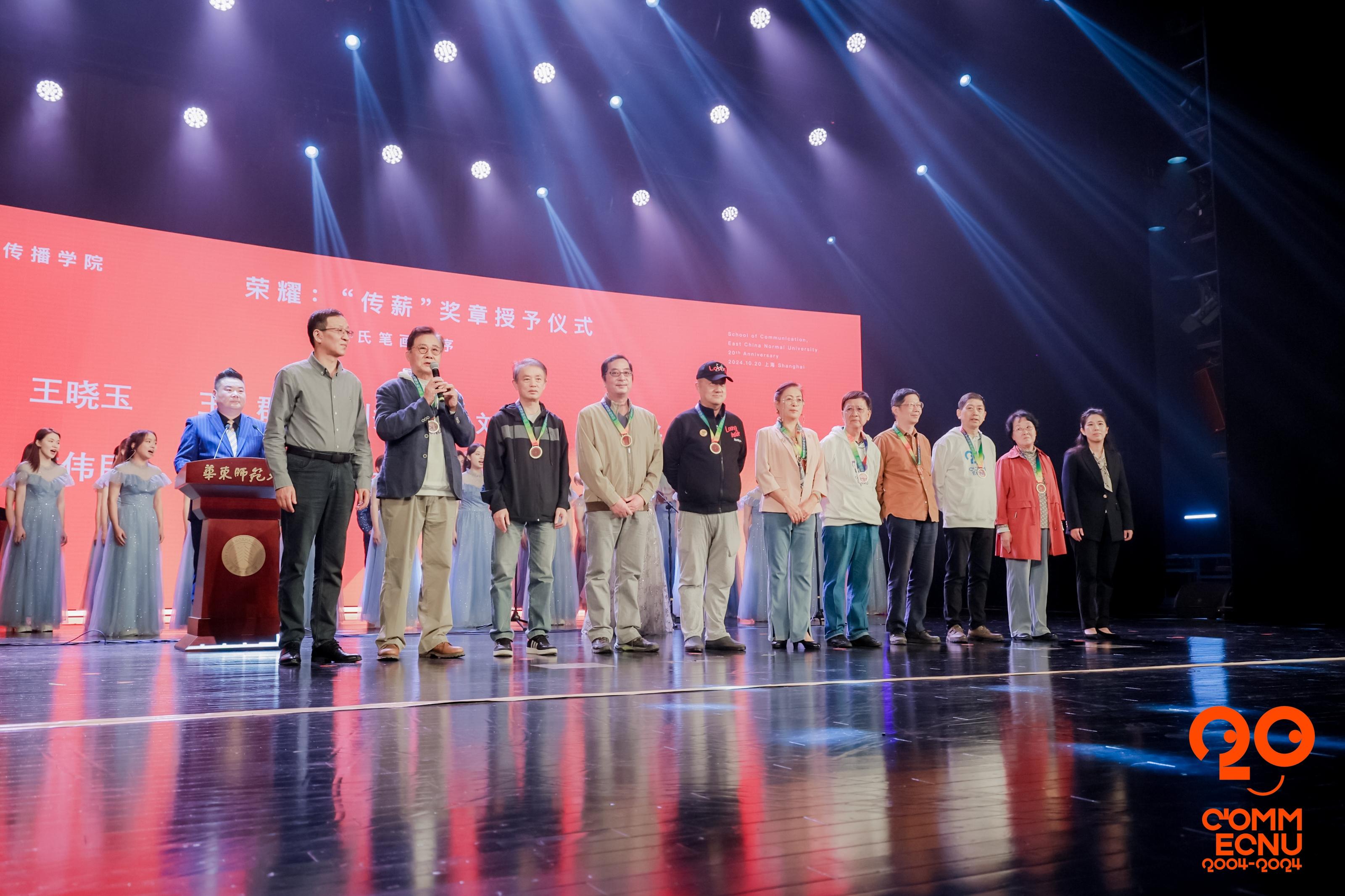 悠扬歌声中,十位退休教职工代表接过寄托着“薪火相传,生生不息”美好寓意的奖章,教师代表王群更以“隆重”、“感动”与“温暖”三个关键词为总结。全体师生以热烈掌声向传播学院教师们学为人师、行为世范、躬耕教育的高尚情怀表示最深切的敬意与由衷的感谢。