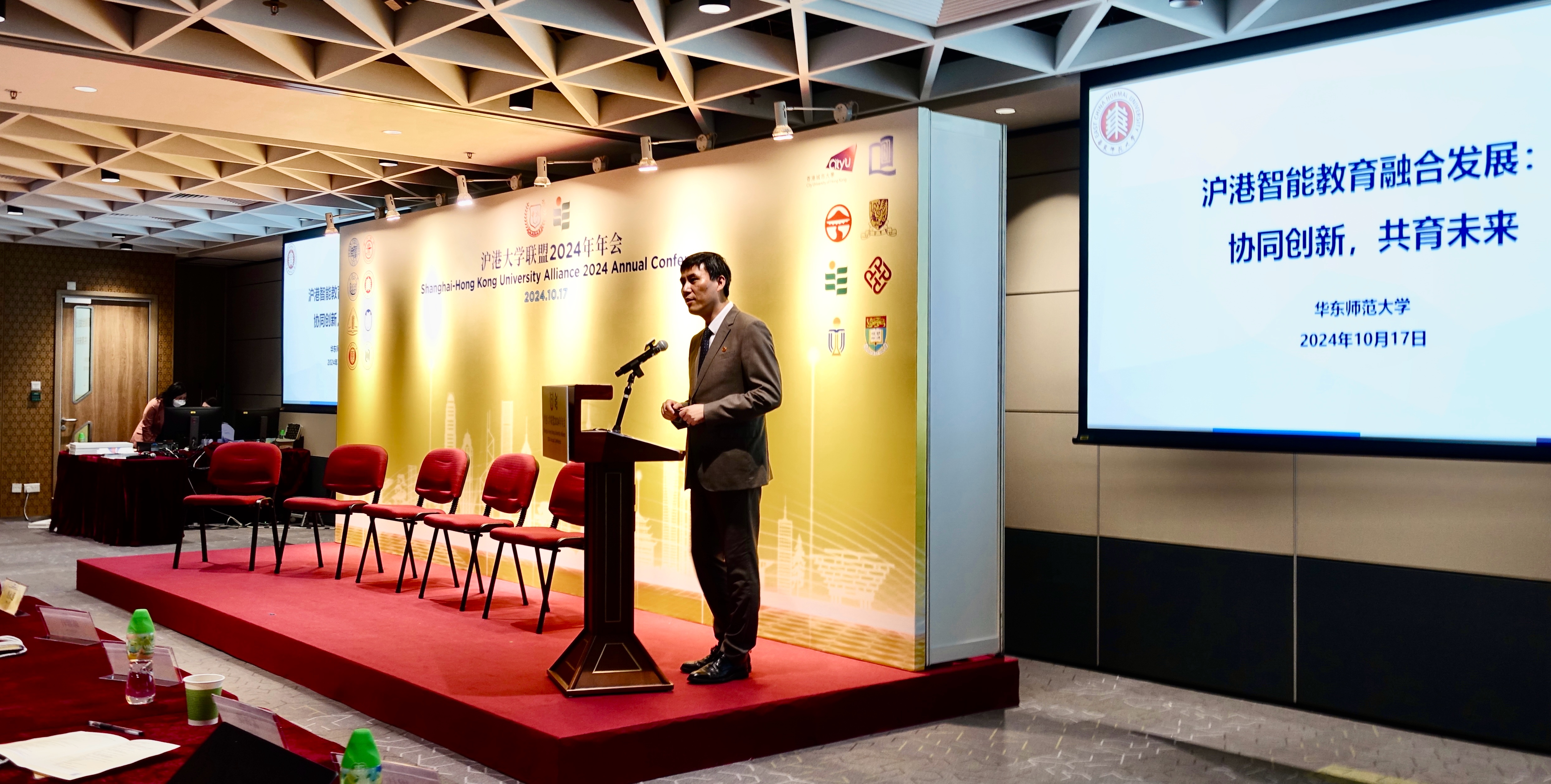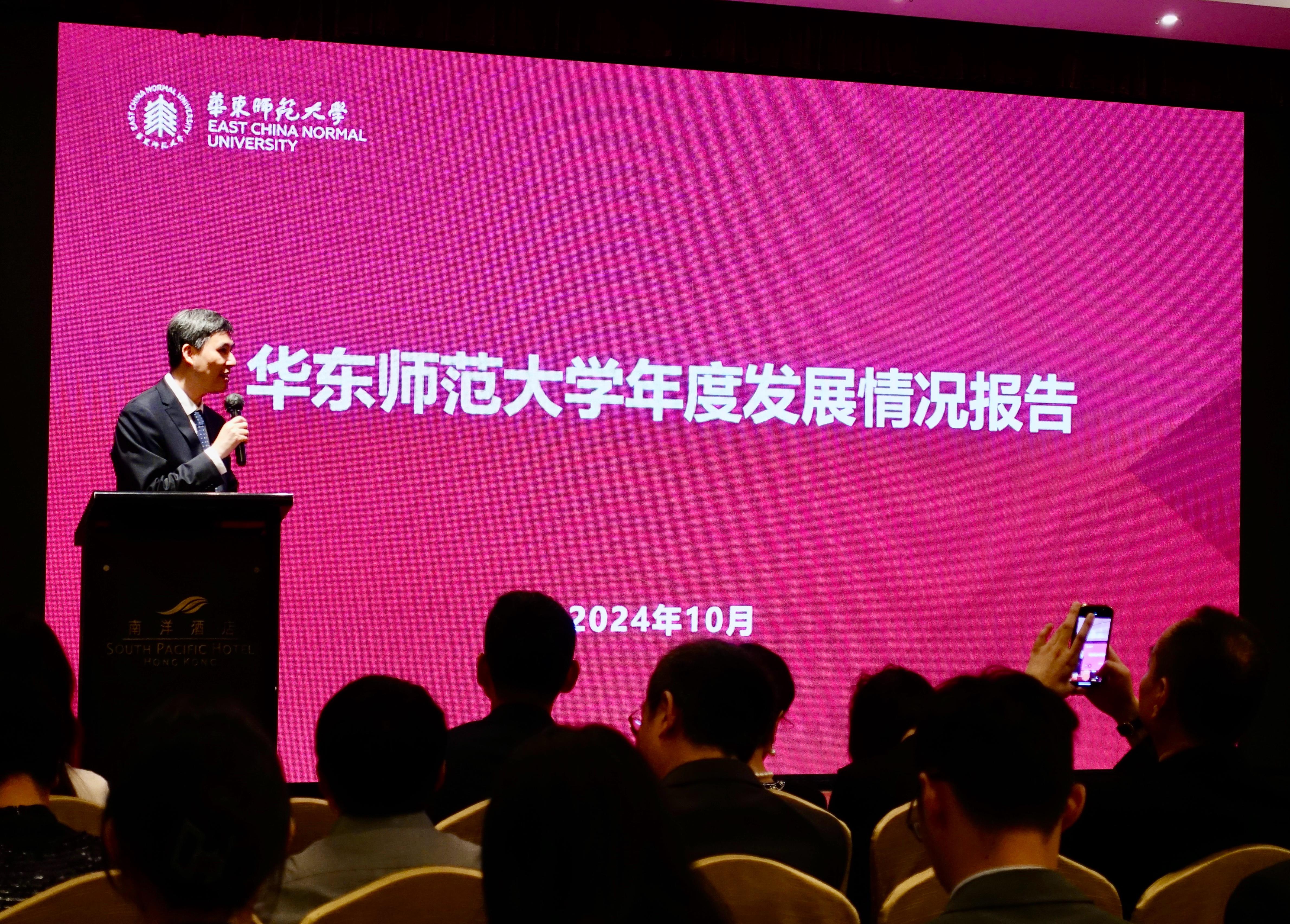 2024年沪港大学联盟年会在香港教育大学举行。孟钟捷代表学校在“沪港教育生态圈发展论坛”作专题报告。他以“沪港智能教育融合发展:协同创新,共育未来”为题,以华东师大智能教育布局为例,介绍了学校在沪港两地协同推进该领域联合科研、人才培养、全球合作的实践与思考。随后,华东师大代表团见证新一届联盟理事单位产生,参与“联盟工作交流会小组会议”,参观“香港教育大学教育创新成果展”,并观摩香港当地小学在计算思维教育及信息科技创新教育方面的公开课。香港中联办教育科技部副部长吴程,香港教育局局长蔡若莲,上海市教育委员会德育处处长朱敏,全国人大代表、沪港社团总会主席、岭南大学校董会主席姚祖辉,上海市政协常委、沪港社团总会常务副会长麦德铨等出席年会开幕式。论坛期间,华东师大代表与香港大学、香港科技大学、香港中文大学、香港教育大学等高校代表亲切交流,共话合作。