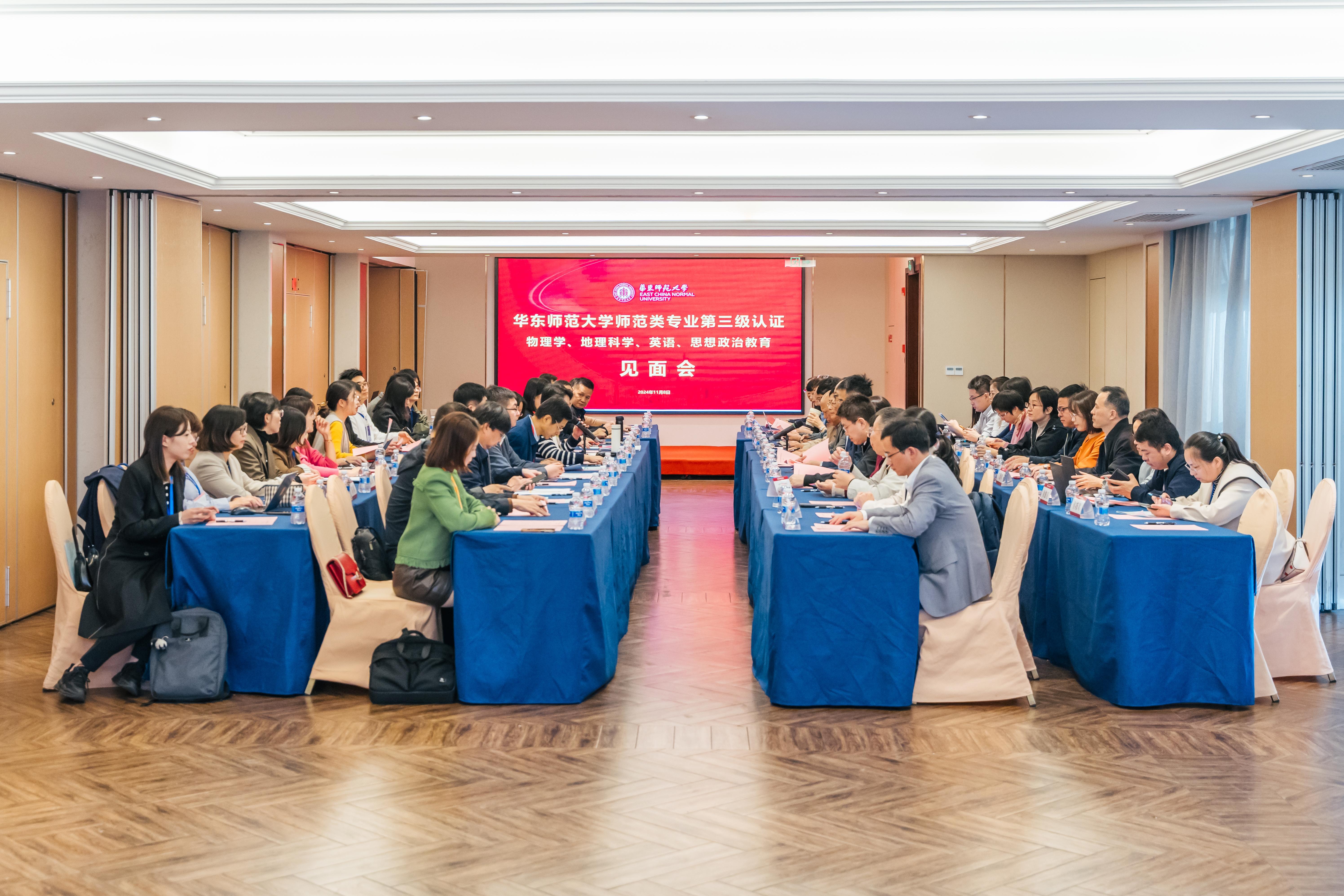 11月8日上午,专业认证见面会召开。专家组全体成员,华东师大副校长戴立益,学校办公室、党委宣传部、党委学生(研究生)工作部、教务处、招生办公室、校团委、人事处、实验室与装备处、信息化治理办公室、财务处、后勤保障部等相关职能部门负责人,物理与电子科学学院、地理科学学院、外语学院、马克思主义学院、教师教育学院等院系负责人出席本次见面会。会议由联合认证专家组组长韩筠教授主持。