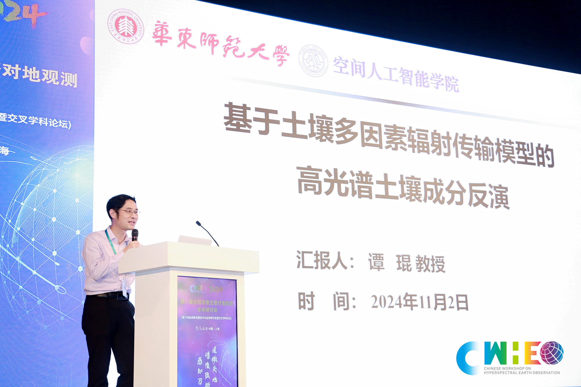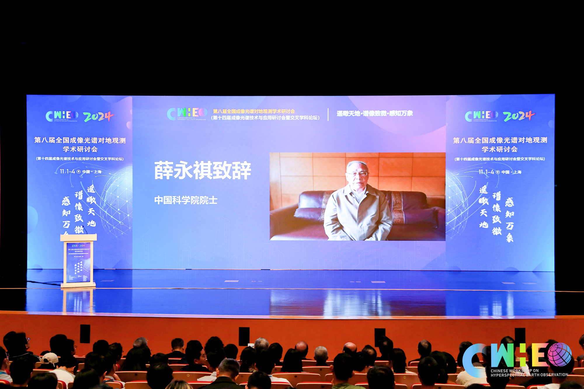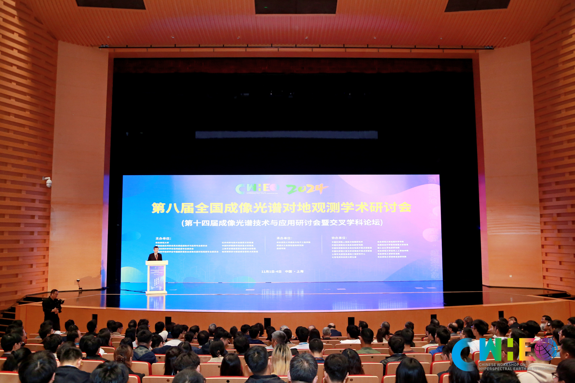 11月1日至4日,第八届全国成像光谱对地观测学术研讨会(第十四届成像光谱技术与应用研讨会暨交叉学科论坛)在永利皇宫登录官网闵行校区召开。本次大会由永利皇宫登录官网、中国遥感应用协会高光谱遥感技术与应用专业委员会、中国空间科学学会空间遥感专业委员会、国际数字地球学会中国国家委员会成像光谱对地观测专业委员会、上海市多维度信息处理重点实验室联合主办,永利皇宫登录官网通信与电子工程学院、南通长三角智能感知研究院、遥感学报共同承办。来自科研院所、高校和企业的五百余位代表齐聚上海,以“遥瞰天地,谱像致微,感知万象”为主题,交流了成像光谱对地观测理论、方法和技术等方面的最新研究成果,共谋成像光谱对地观测技术的新发展。